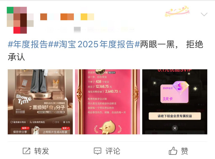 过去一年,你花了多少钱,买了什么宝贝?这两天出炉的淘宝年度账单让很多人一看一个不吱声。有网友:平时抠抠搜搜,但年度账单上好喝的一杯接一杯,主打一个亏了谁都不能亏了老己的妈生嘴。
