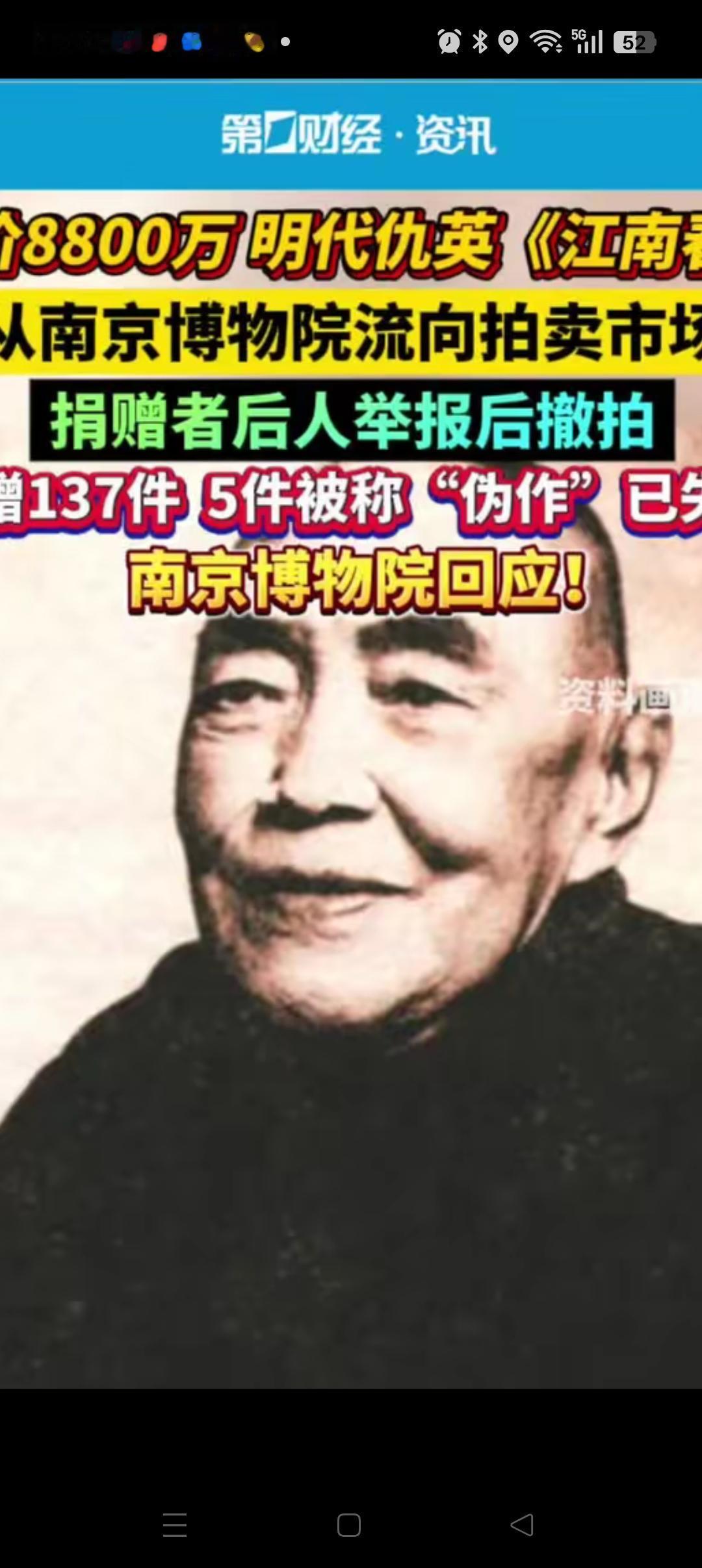 南京博物院,接下来应该尽快做这3件事: 1、把那5件去向不明的捐赠古画尽快公开:毕竟当时能捐赠137幅古画的人,都是非常大气的。如果不能尽快公开,那以后捐赠的人都会先考虑一下了。 2、查清楚估价8800万的古画,到底到哪里来的:这个不难,直接去拍卖的地方,问一下工作人员就清楚了,很快就有答案 3、博物院公开道歉,并改善流程:以后捐赠的古画被鉴定是“假”的,应该第一时间联系捐赠人,把东西退回去。收到的捐赠古画也应该保存完好,可以查询 大家觉得呢[what][what]
