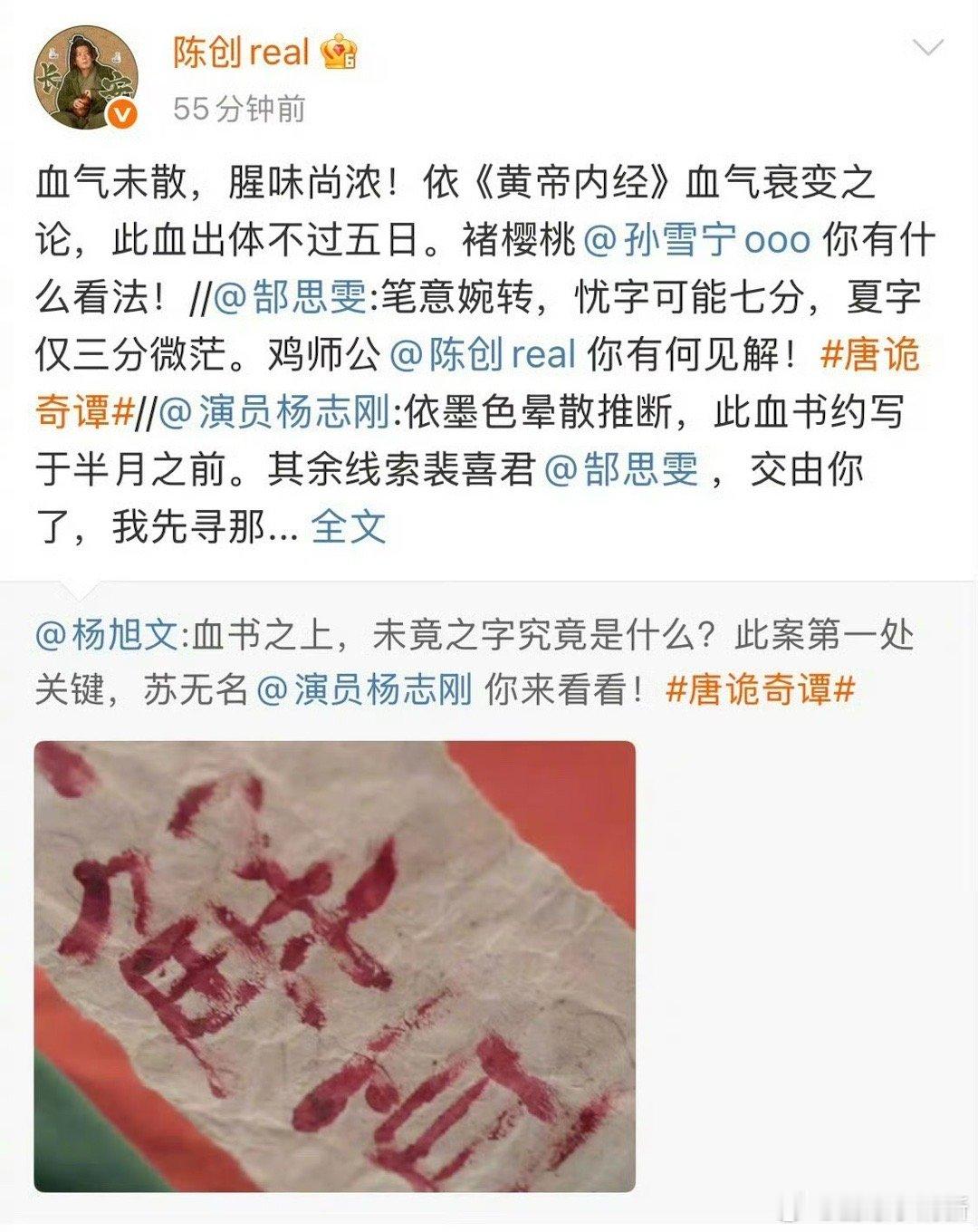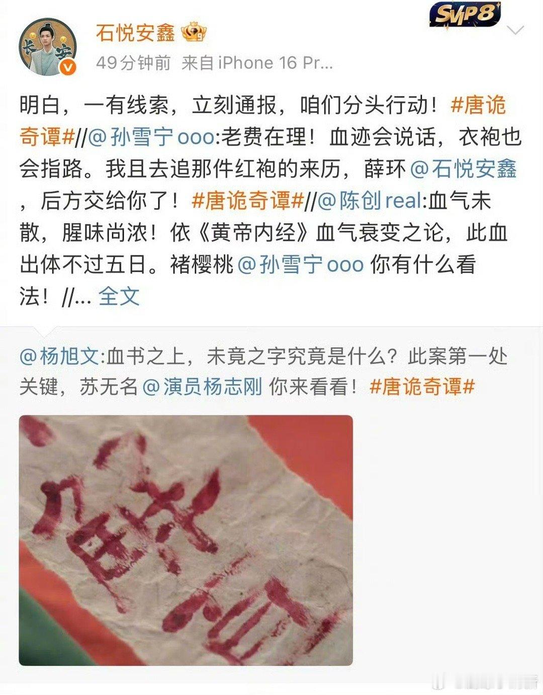 唐诡剧组谁教你这么团建的 谁被唐诡剧组团建笑晕!杨旭文带头发血书整活,全员火速跟上接力玩梗,台词复刻精准踩点超还原,戏里氛围感延伸到戏外,群像太有梗了,血书谜底快揭晓,我蹲在屏幕前坐等更新