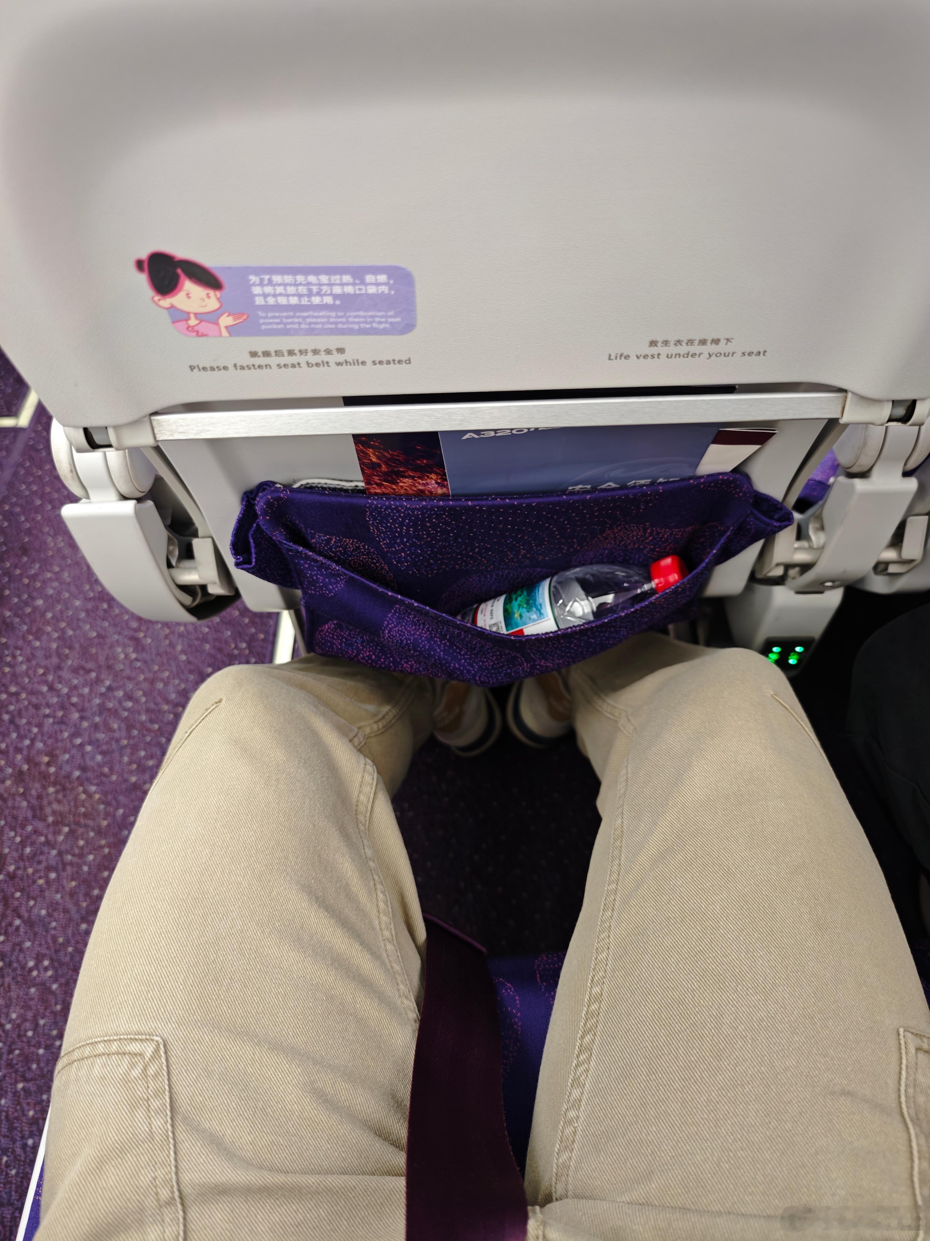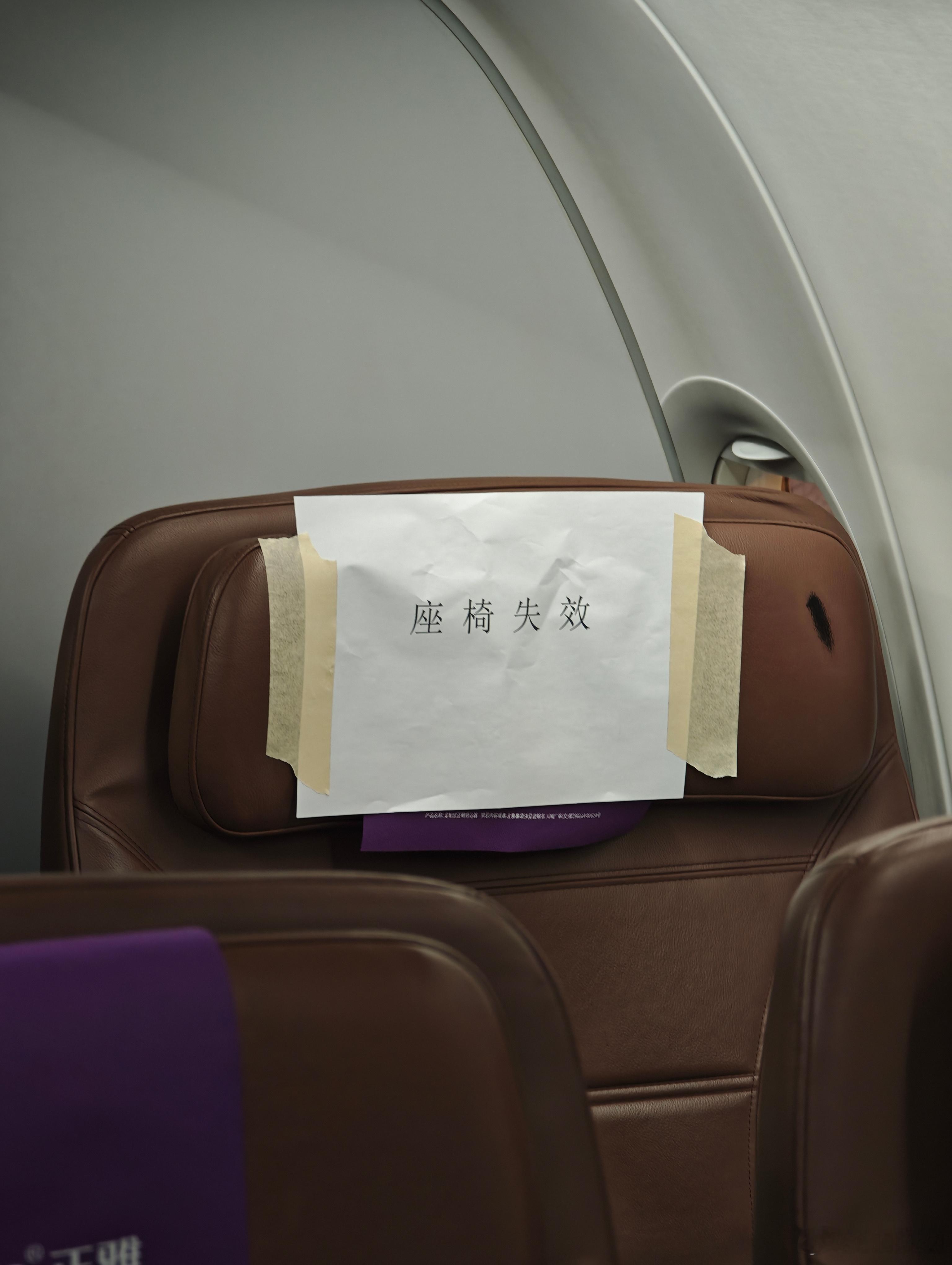 准备回广州,返程坐的是南航和吉祥航空的共享航班,公务舱坏了一个座椅,就这样拿A4纸和美纹胶带贴着这趟的座椅舒适性也不太行,填充物薄,坐起来偏硬,但是给了腰枕,稍微弥补了一下。