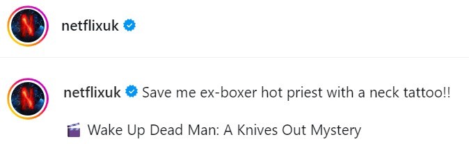 利刃出鞘3小神父的纹身很贴角色设定网飞官方账号:“前拳击手,hot priest” .跨年电影愿