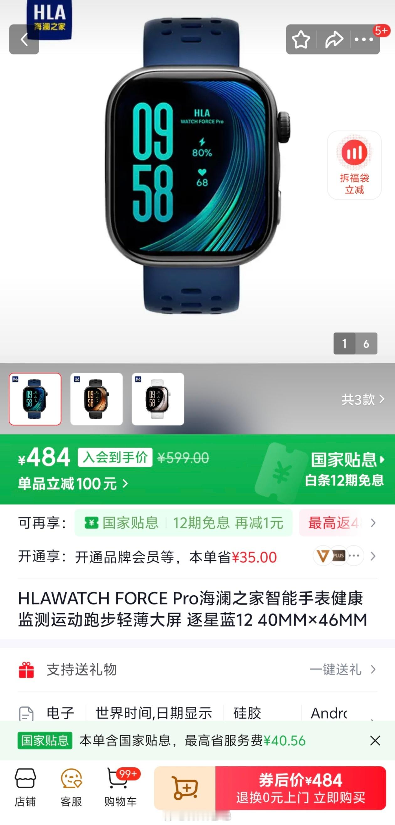 更行各业都在跨行,海澜之家出了一款智能手表,蓝黑白三个配色,也不知道是哪家代工的,中规中矩的配置,标价 599,首发价 499。