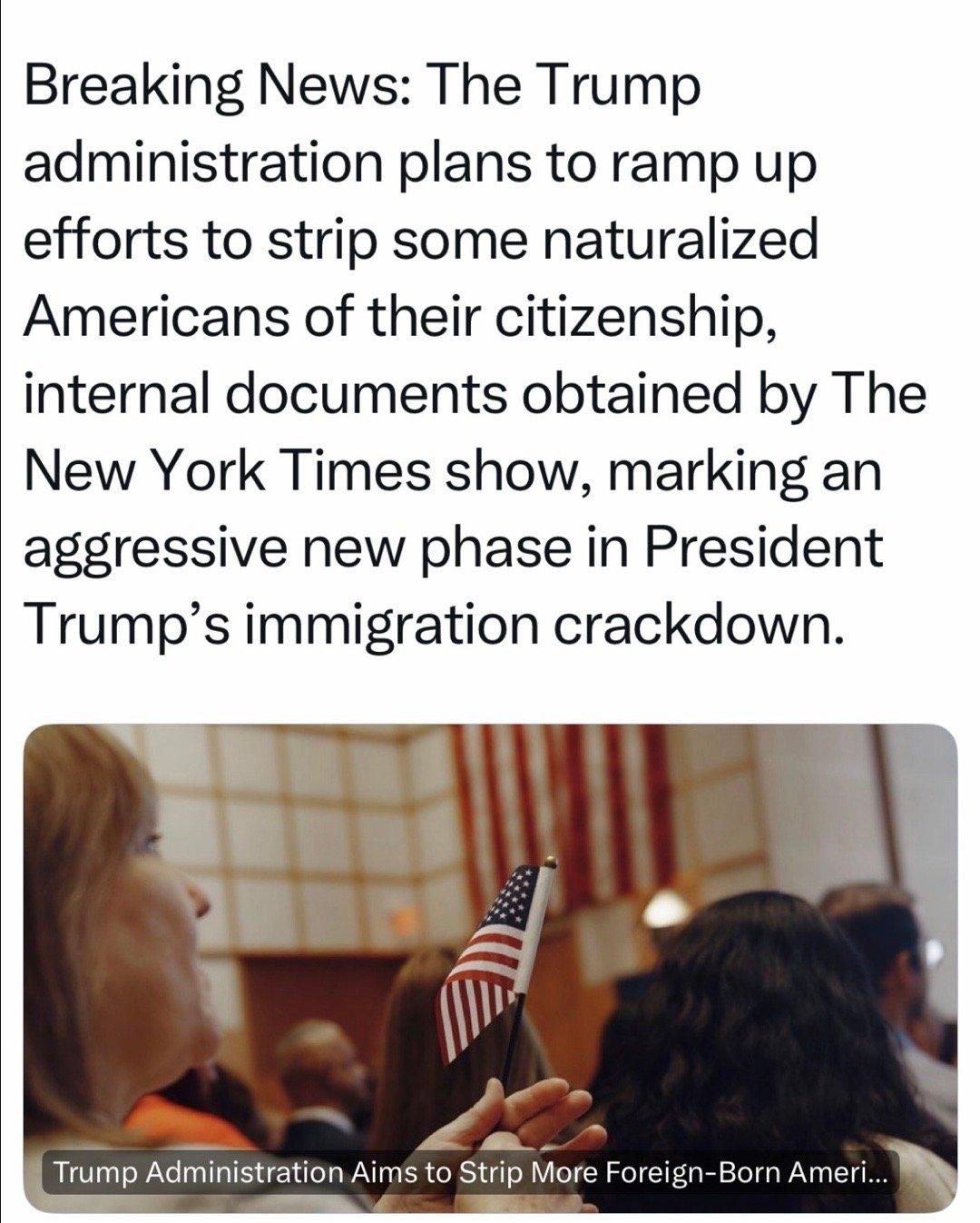 牛啊,美国政府要求按配额制剥夺公民身份,每月人数必须达到一定数量 根据周二向美国公民及移民服务局地方办公室下发的内部指导文件,要求这些机构在2026财年“每月向移民诉讼办公室提供100-200个剥夺公民身份案件”。 相比之下,司法部数据显示,从2017年到目前仅有逾120个案件被提交。 定额淘汰,企业裁员啊这是。