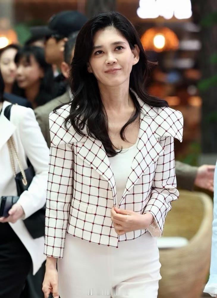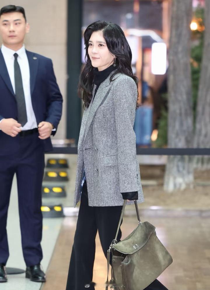 12月17日,三星公主李富真在首尔出席活动,她穿着灰大衣很优雅,但是看到她走路的