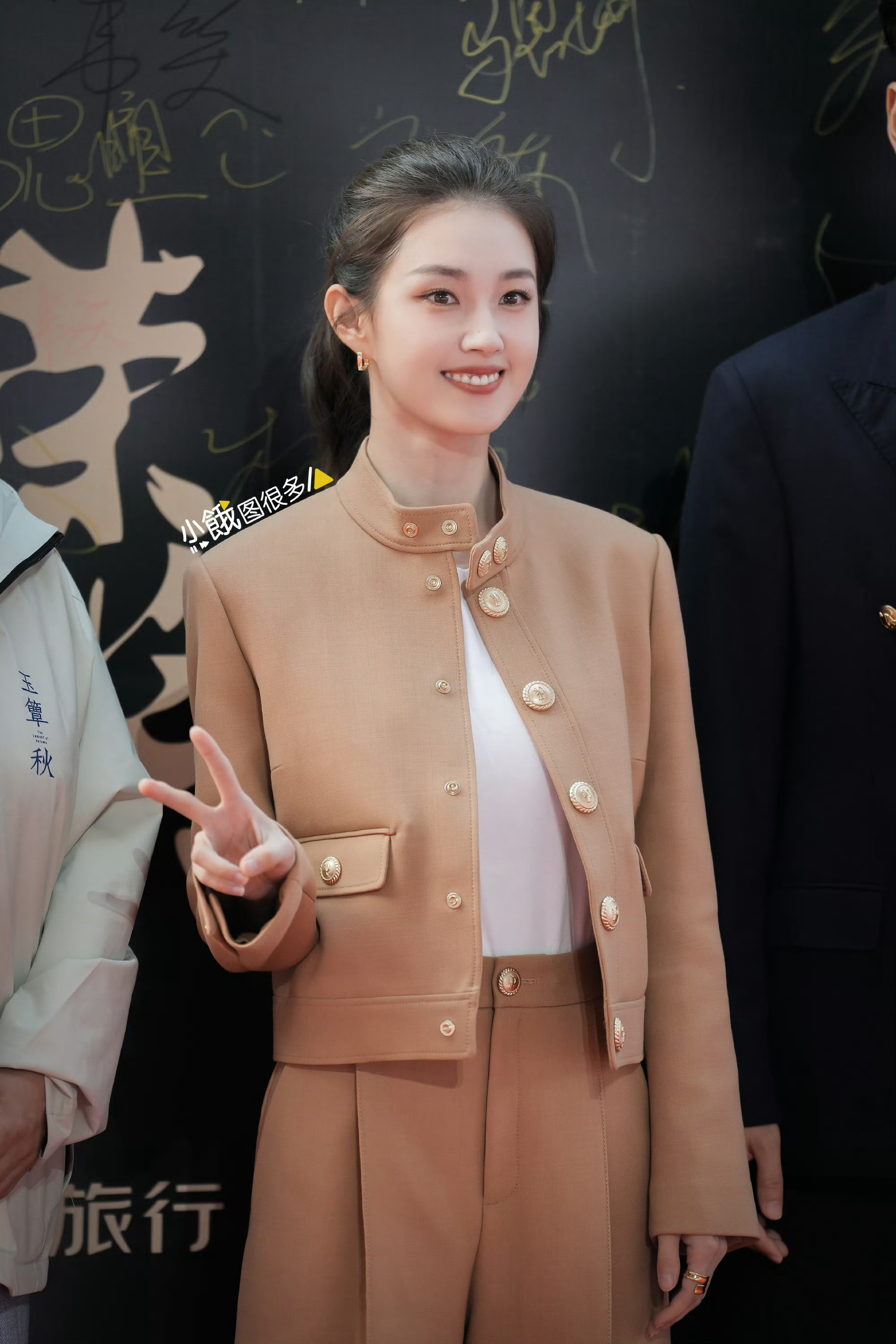 刘亦菲这条裤子挺养生,毕竟降温了肚脐眼必须护住啊