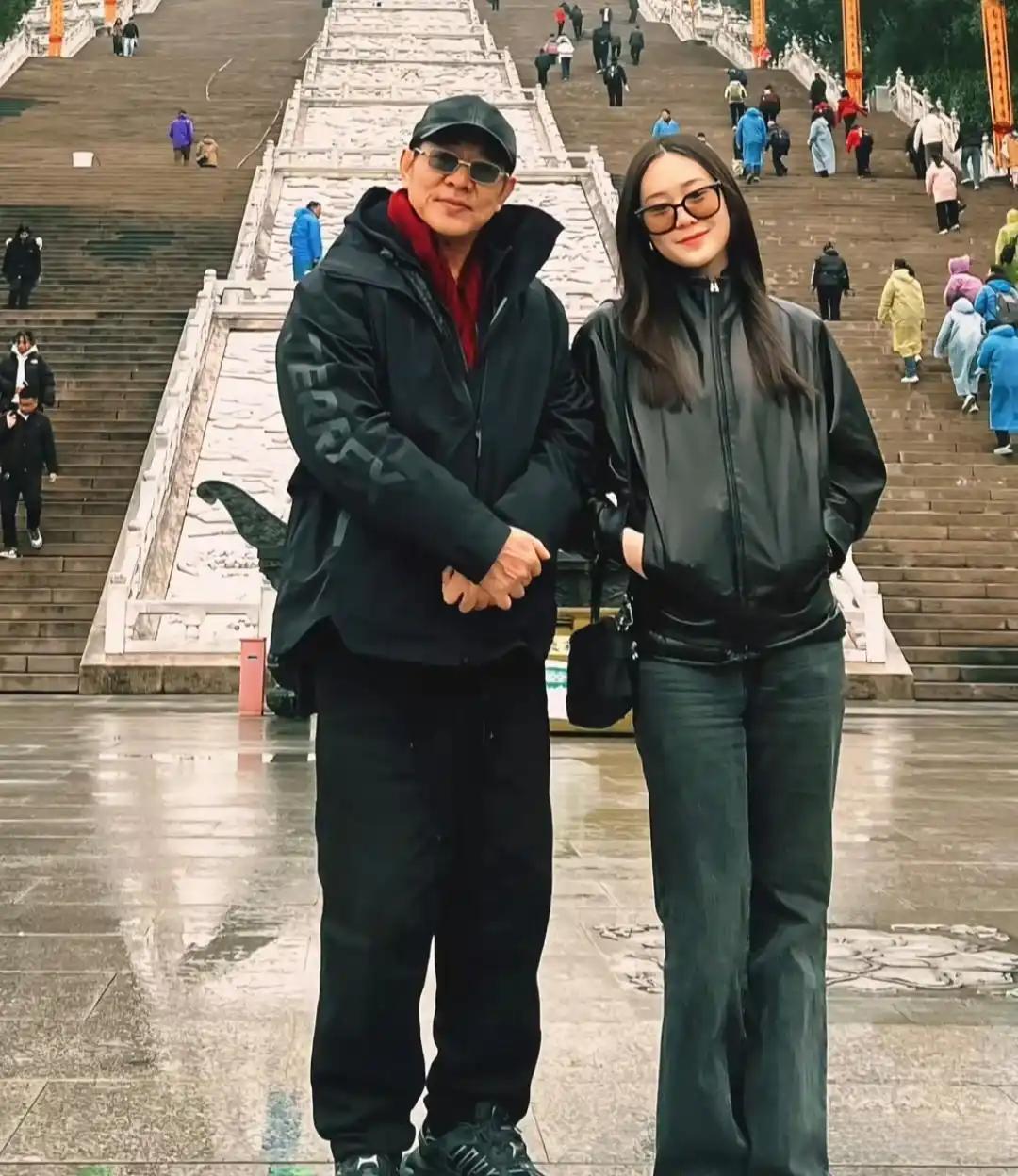 李连杰带22岁小女儿Jada现身安徽九华山祈福!他一身黑色冲锋衣配墨镜红围巾示人,虽一脸开心藏不住,但肉眼可见的苍老了好多,这位昔日的荧幕硬汉是真的老了。镜头中的小女儿,穿黑色皮夹克配披肩长发,对镜甜笑乖巧活泼,只是颜值一般,并没遗传到妈妈利智的一丝美貌,也是可惜了!说实话,利智生的两个女儿貌似都没有前妻黄秋燕生的两个女儿漂亮啊!