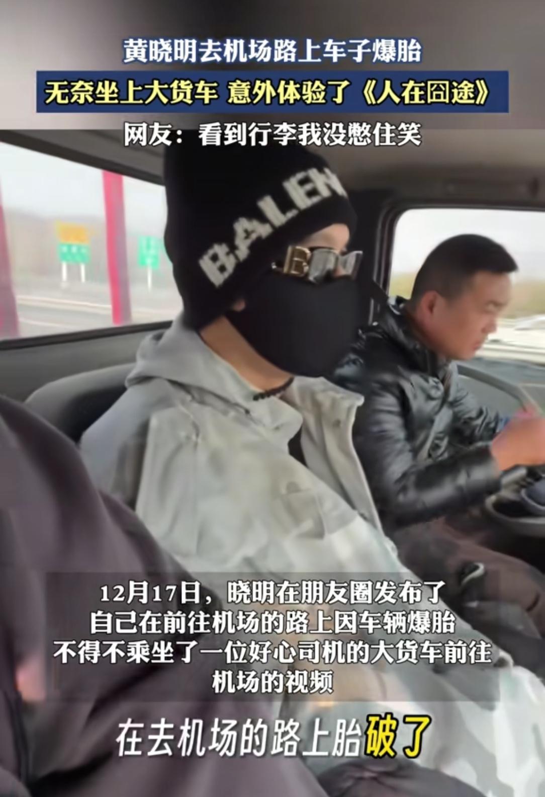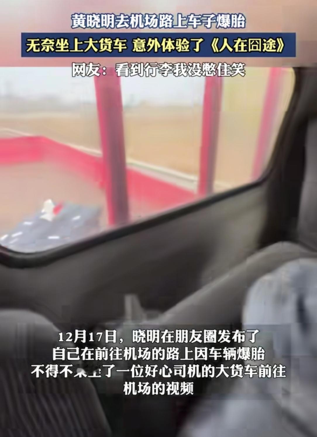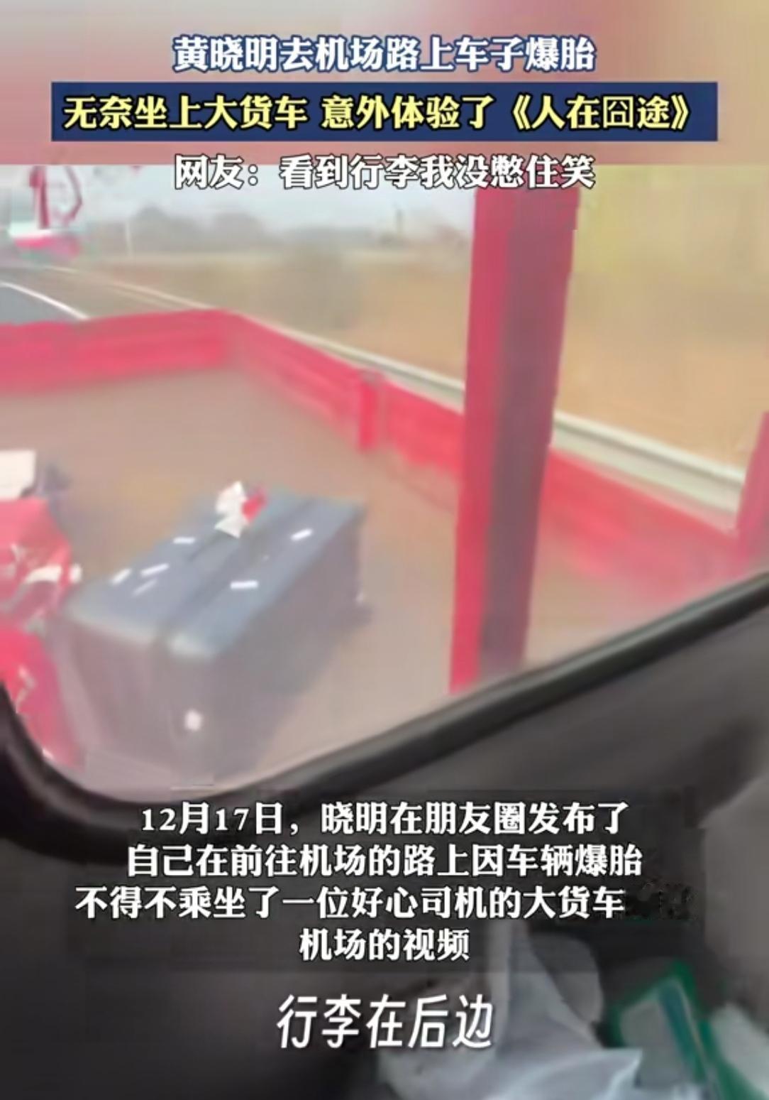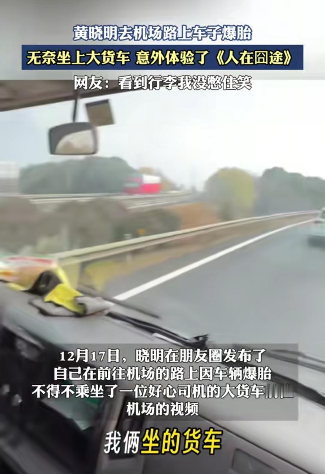 明星黄晓明机场路上车子爆胎,现实版“人在囧途”上演!四个大行李箱往路边一摆,私家车根本装不下。结果你猜怎么着?人家伸手一拦,直接上了路过的大货车。行李往后斗一扔,明星带着助理就坐进了驾驶室。这画面真有点魔幻。艺人遇到急事儿,“刷脸”还真好使!想起之前也有明星搭过路人车、粉丝车,甚至娱记的车。关键时候这张脸就是通行证。但话说回来,要不是师傅心善,谁愿意让你这么“蹭”呢?虽然看着挺囧,可心里挺暖。这个世界还是热心肠多!你看师傅二话没说就帮忙,普通人遇见明星不围观反而伸出援手。这种不加滤镜的善意,比什么公关稿都动人。为货车师傅点赞!认同的朋友点个❤️,转发出去让更多人看见这份温暖!关注我,每天带你看新鲜事!黄晓明 明星