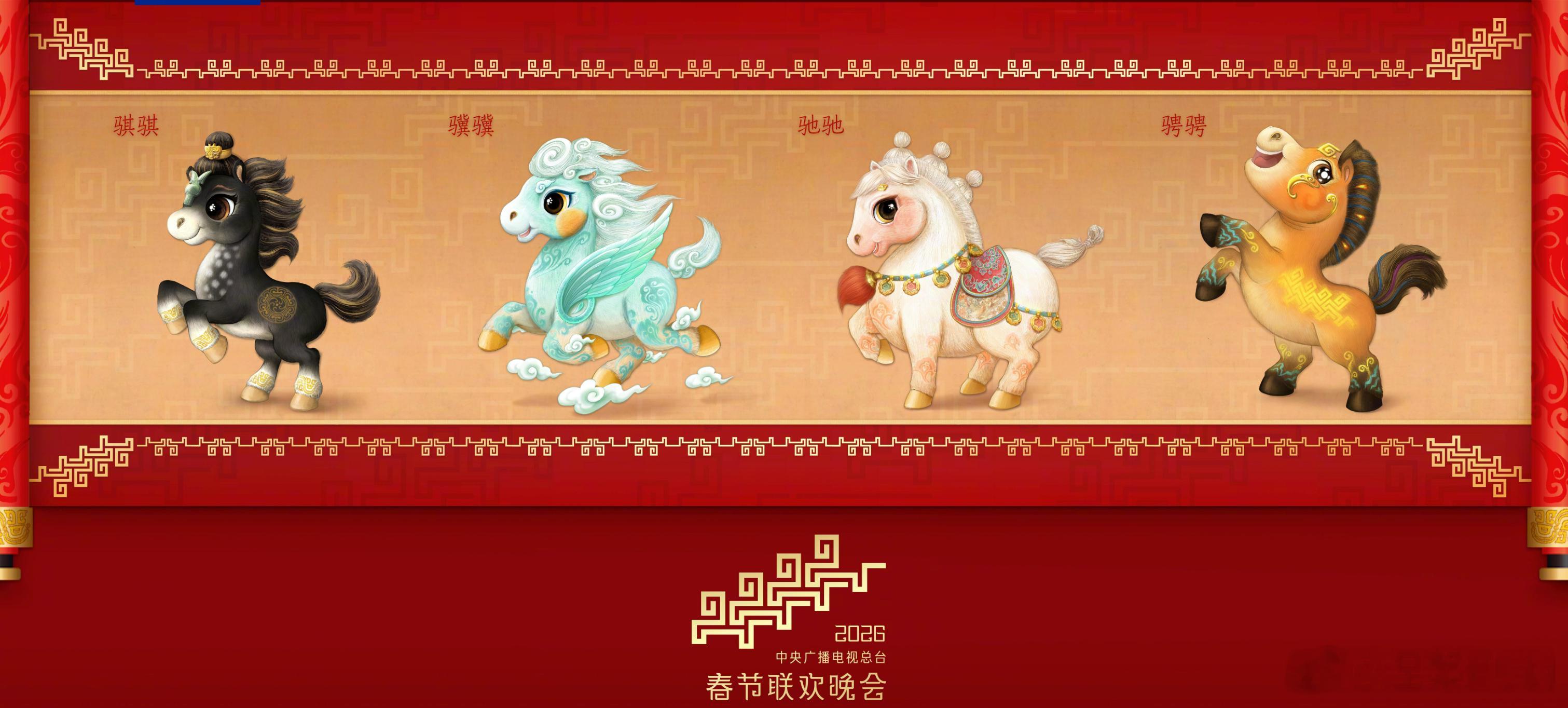 马年春晚吉祥物发布直接上了 四匹可爱的马,颜色不同名字也不同,分别叫春晚骐骐骥骥驰驰骋骋。现在春晚吉祥物也和手机似的,都有不同颜色造型了。你最喜欢哪个吉祥物啊?