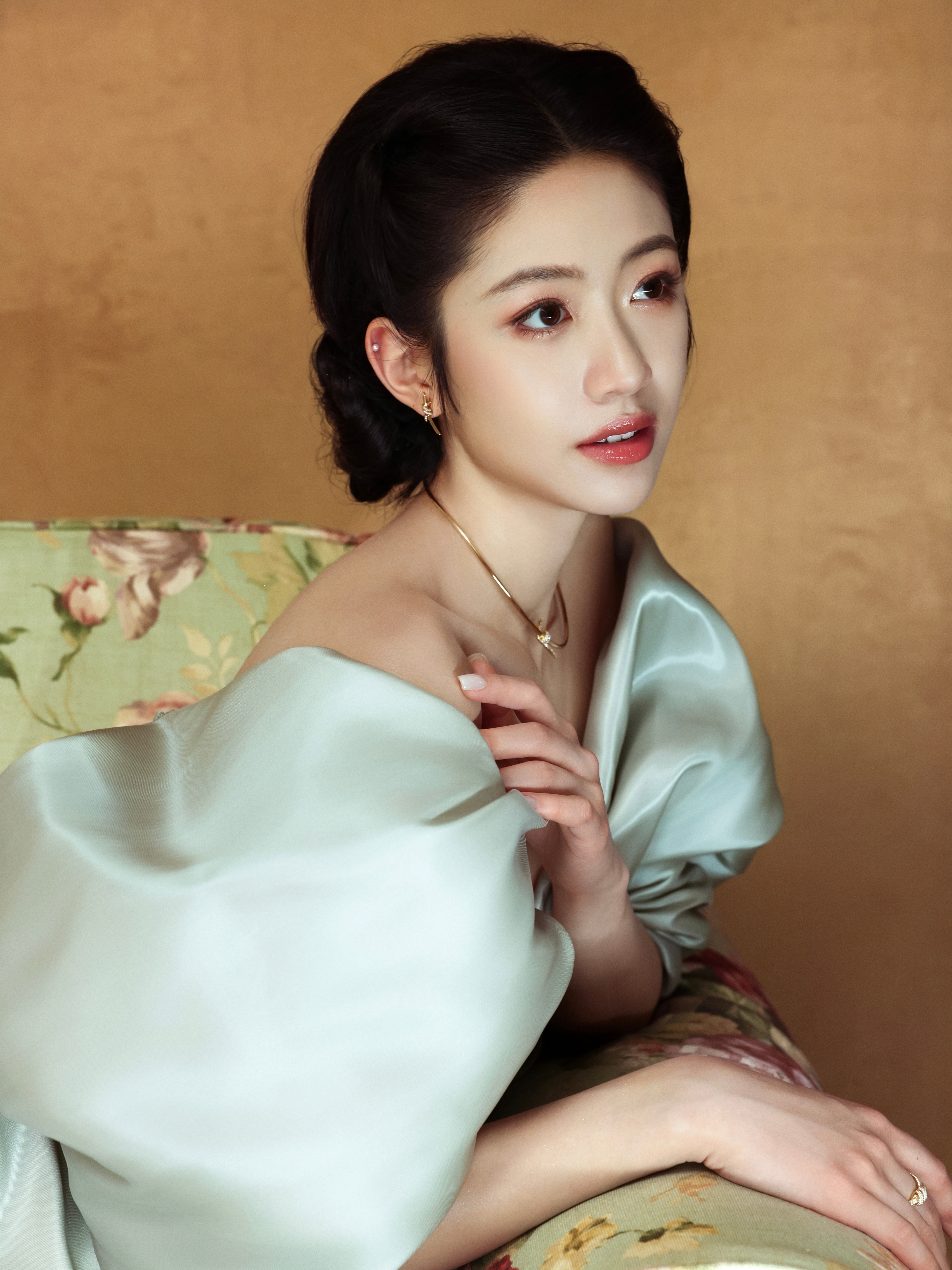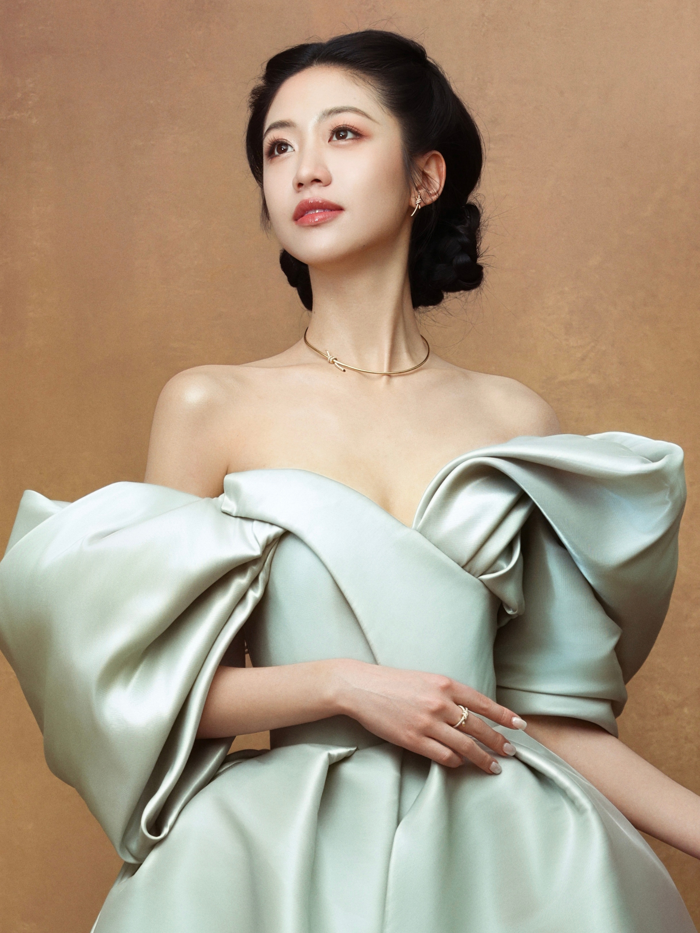 向涵之 × 搜狐时尚盛典,一袭露肩礼服搭配Tiffany Knot 系列珠宝亮相,盎然绿意,漫光幕诗💚风格大赏向涵之复古名伶造型
