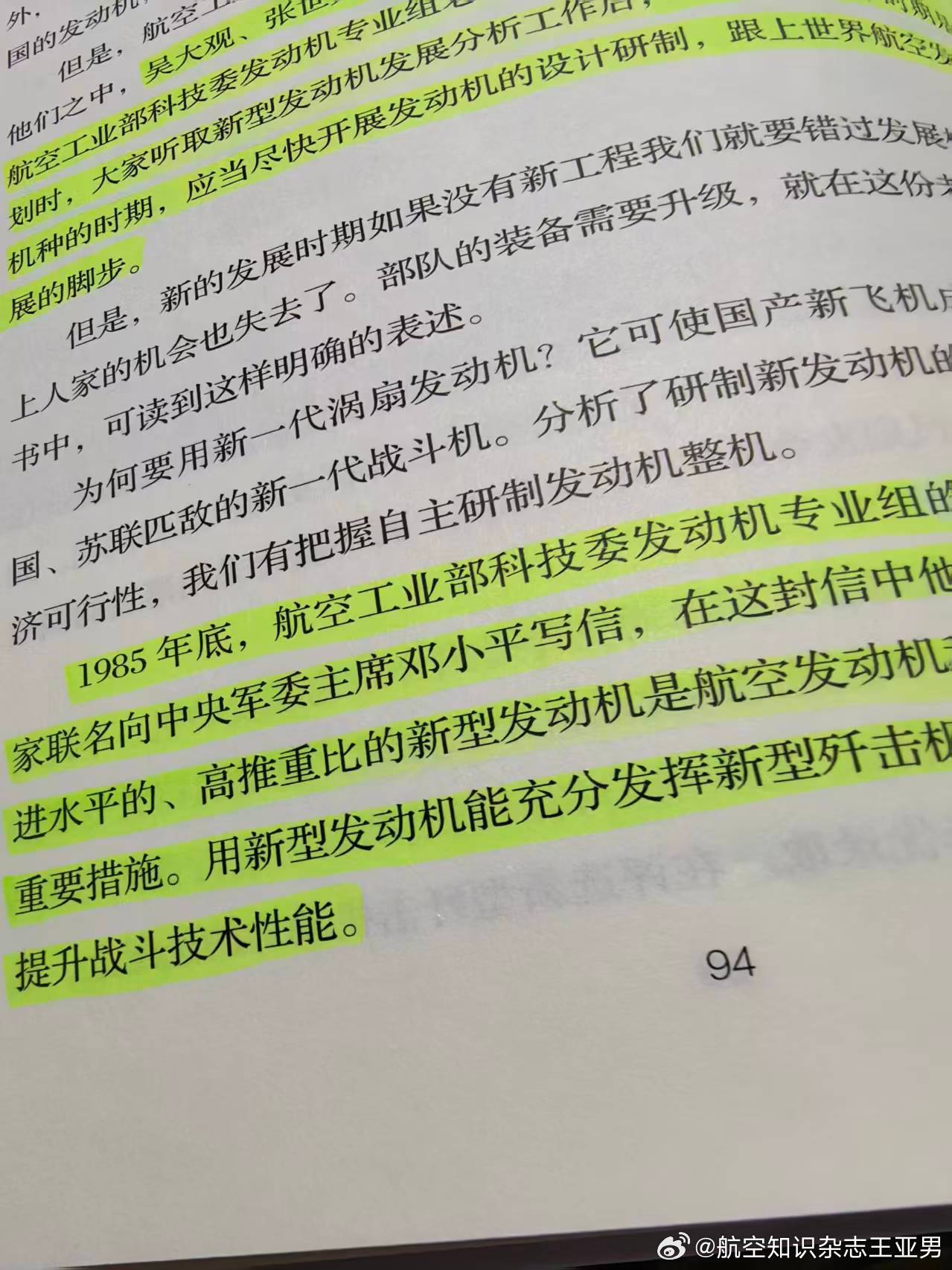 《张恩和》这本书看起来有点特别,许多内容给人一种不连续的感觉,不少故事没能从头写到尾,估计是涉及到一些敏感的问题,在出版前对原始稿件进行了调整。尽管#航空创作计划# 如此,这本书还是能让大家看到张恩和老先生所经历的中国航空发动机最重要的那个发展阶段,也就是从迷茫到果决的转变,从910发动机到太行、昆仑,张老经历过太多磨难,这不仅是他个人的磨难,也是中国航空发动机事业的磨难。正是因为有张老这批人的坚守,我们才从这些磨难中找到了发动机研制的客观规律,也真正明白没有自主研发的航空发动机,国产新一代战斗机是无法实现技术和产能全面自主可控的,中国迈向航空科技强国的道路上将缺少一块至关重要的铺路石。当年910发动机工程已经是一款性能比较先进的加力涡扇发动机,从60年代一直干到80年代,花费20年时间,期间“三上四下五转移”(张恩和先生语),尽管已经取得了相当大的成果,但是却因为配套飞机项目下马而同被迫停止。等到中国开始冲击第三代战斗机时,发现先进发动机仍然是个缺项。于是也就有了1985年吴大观等9位老专家联名致信中央军委,大声疾呼:具有先进水平的、高推重比的新型发动机是航空发动机科研打基础、上水平的重要措施。用新型发动机能充分发挥新型歼击机的战斗潜力,较大幅度提升战斗技术性能。不到一个星期,邓公在这份《关于加速航空发动机发展的建议书》上批示,我认为所提建议很重要……似可同意。这一决定,为中国新型战斗机配装国产新型发动机创造了条件,更为“太行”立项奠定了基础,更重要的是,它标志着中国航空动力正式开始在自主条件下冲击具备世界先进水平的高推重比涡扇发动机。这款被命名为“太行”的发动机,最终由张恩和先生担任总设计师,经过近20年的淬炼,终于功成,其中的许多挫折细节,书里写了,大家可以自己去看,感受挫折时分的那种窒息压力。有趣的是,根据书中介绍,许多当年为910发动机准备的资源,后来还都用在了“太行”上。