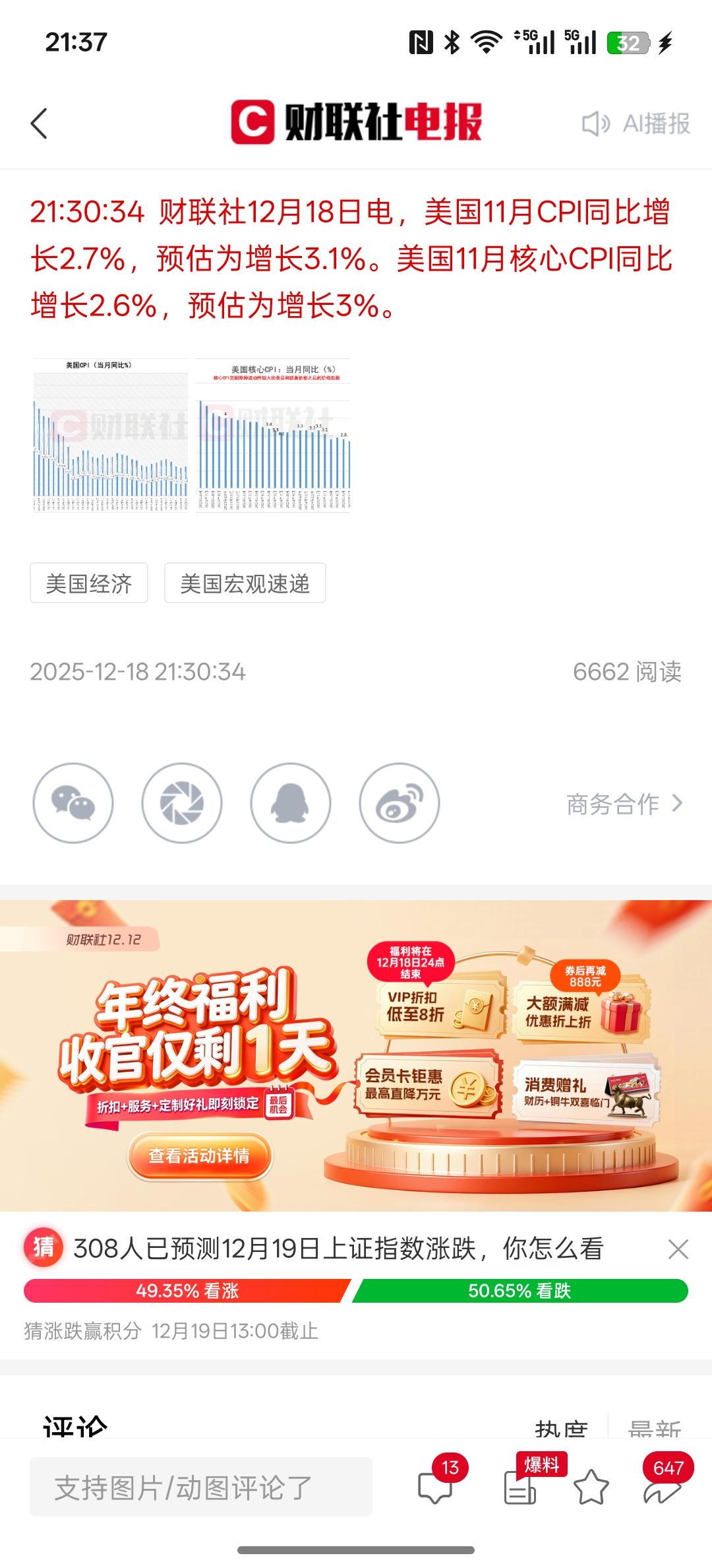 美国11月CPI同比增长2.7%,预估为增长3.1%。美国11月核心CPI同比增长2.6%,预估为增长3%。CPI的上涨不会要加息吧?通货膨胀继续上升,对接下来美联储降息肯定有压力!美联储接下来会怎么做?明年要降息两次,大概率是可能会降!就算现在的CPI增长,但依然还在预期范围内! 美国国家的物价上涨,对于特朗普来说,还是有点压力!现在,特朗普一心想发展经济!