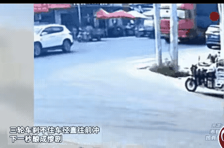 这个开三轮车司机,他是看不见前面有大货车?还是他刹不住车?就是这样和大货车硬碰,看样子好像有一个人倒在地下,三轮车司机去追大货车,这起事故,请问一下,是谁的责任?是大货车的责任?还是开三轮车这个的责任?