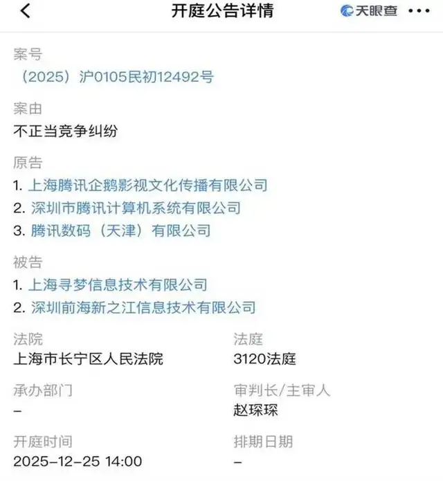 原告深圳市腾讯计算机系统有限公司、上海腾讯企鹅影视文化传播有限公司、腾讯数码(天津)有限公司,是腾讯的三家子公司。