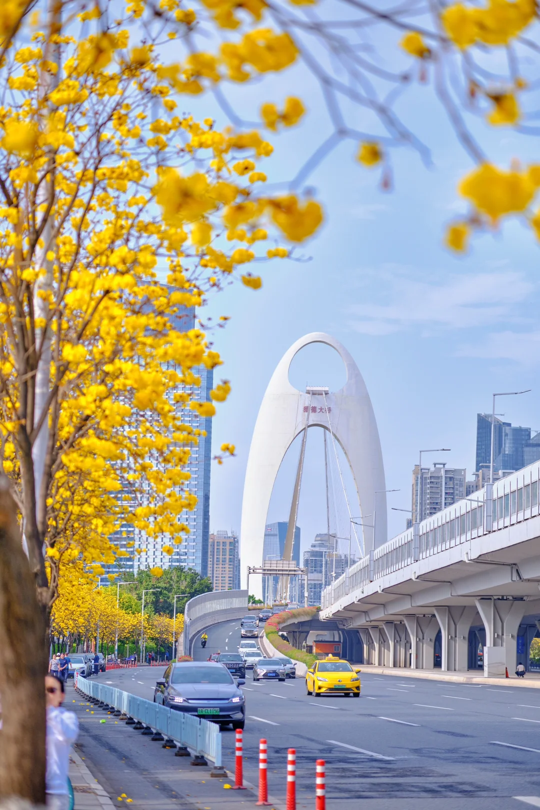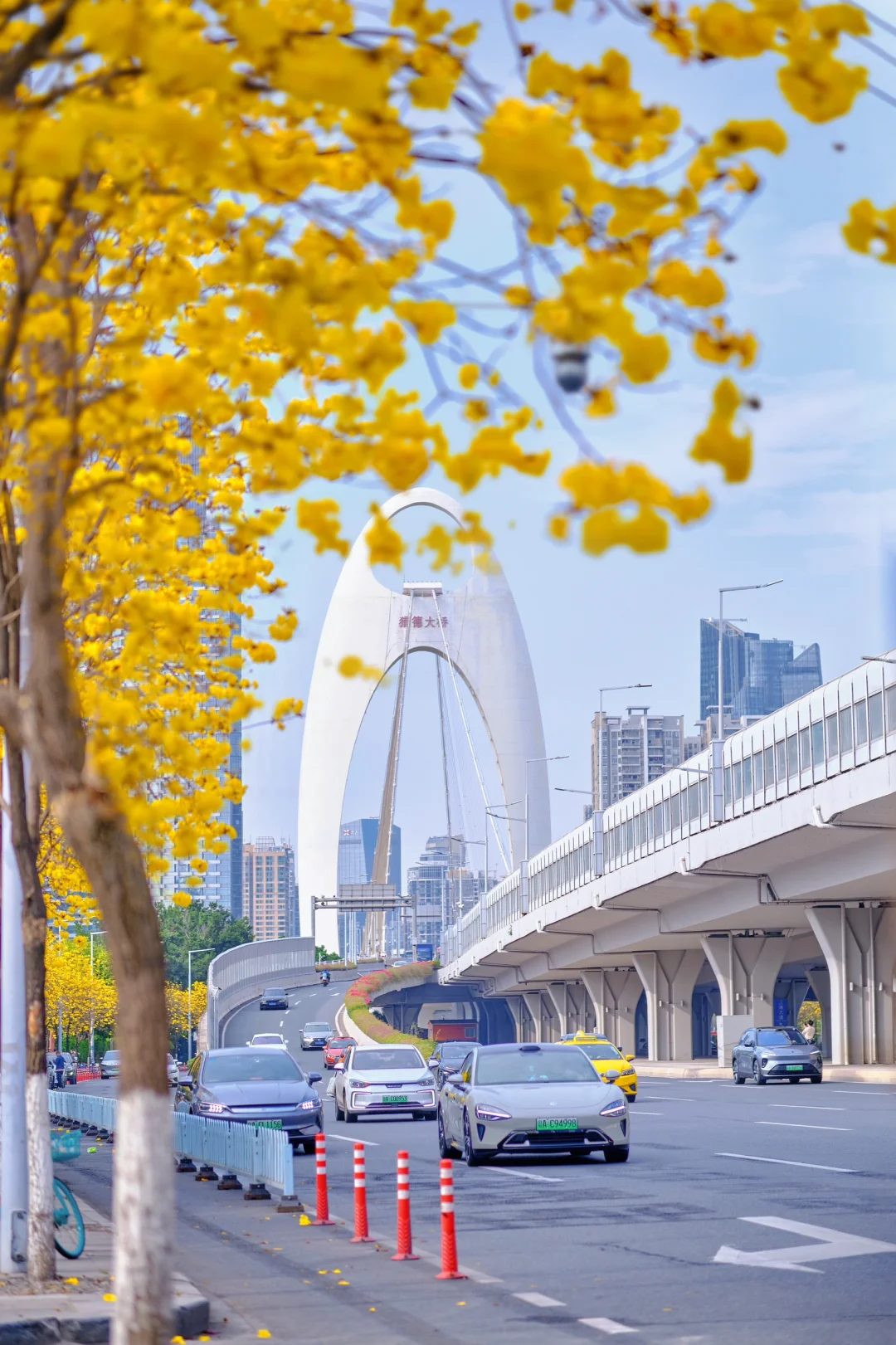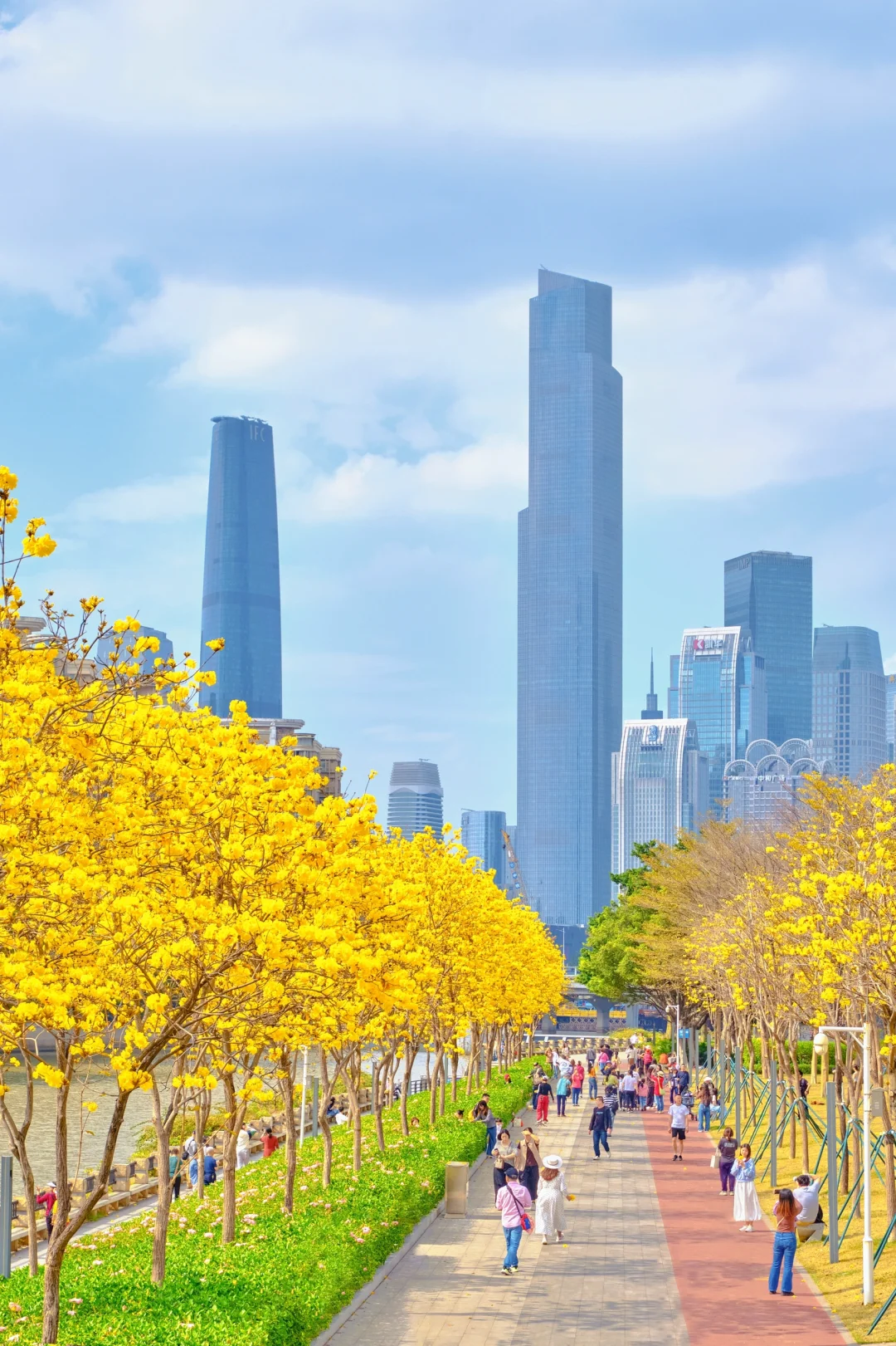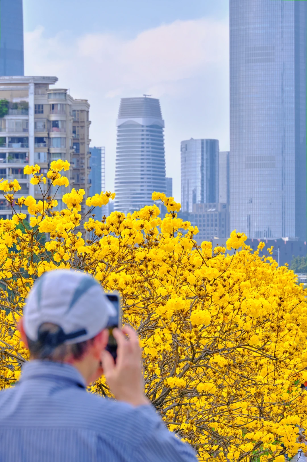珠江畔的风把🌼🌼黄花揉碎成金箔 此刻成了广州的温柔花瀑🖼️画框 金箔缀满枝头的瞬间🌼🌼我与花城撞了个满怀 全城都在偶遇的黄花,原来和广州塔zui搭配 当广州塔解锁了这个黄花风铃框🖼️春天便有了期待的模样 🙋🏻‍♂️🙋🏻‍♂️这里是广州——磨碟沙公园 走进公园里,仿佛踏入了一幅金黄色的油画中❗️满目的黄花风铃木🌼🌼一朵朵、一簇簇,在阳光下璀璨夺目,像是大自然zui慷慨的馈赠 📍地址:广州磨碟沙公园 🚇交通:广州地铁8号线赤岗站C2出口 🚗自驾:导航到“广报中心”路边可以停车 📷小TIPS [一R]在树下低角度仰拍,以黄花为前景,广州塔为背景,大光圈虚化花丛,突出塔身的纤细与天空的纯净 [二R]晴天的清晨或傍晚光线柔和,逆光拍摄可让花瓣透出金光 [三R]公园外面可以拍猎德大桥与马路边的黄花风铃木同款 [四R]天气好的时候拍完花可以去琶堤看日落 🙋🏻‍♂️🙋🏻‍♂️我是汉叁~爱游玩爱摄影,持续分享更多广州周边游玩拍照好地方~