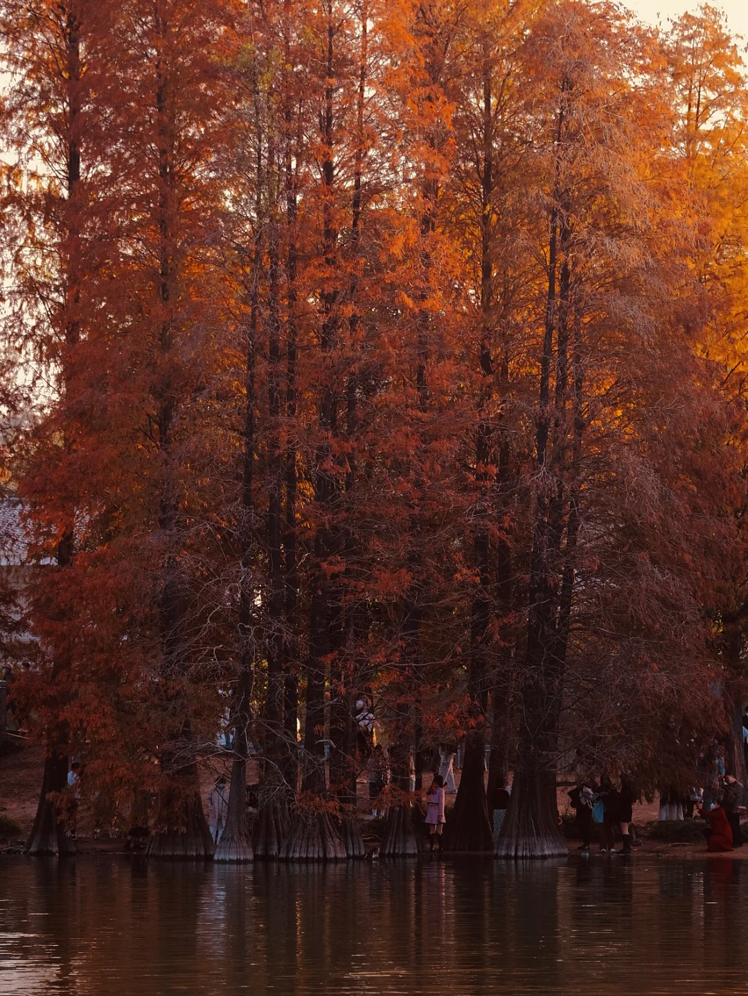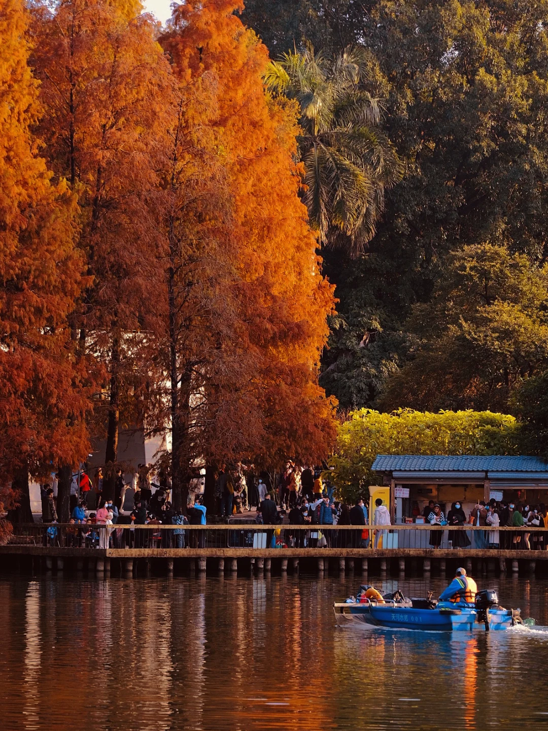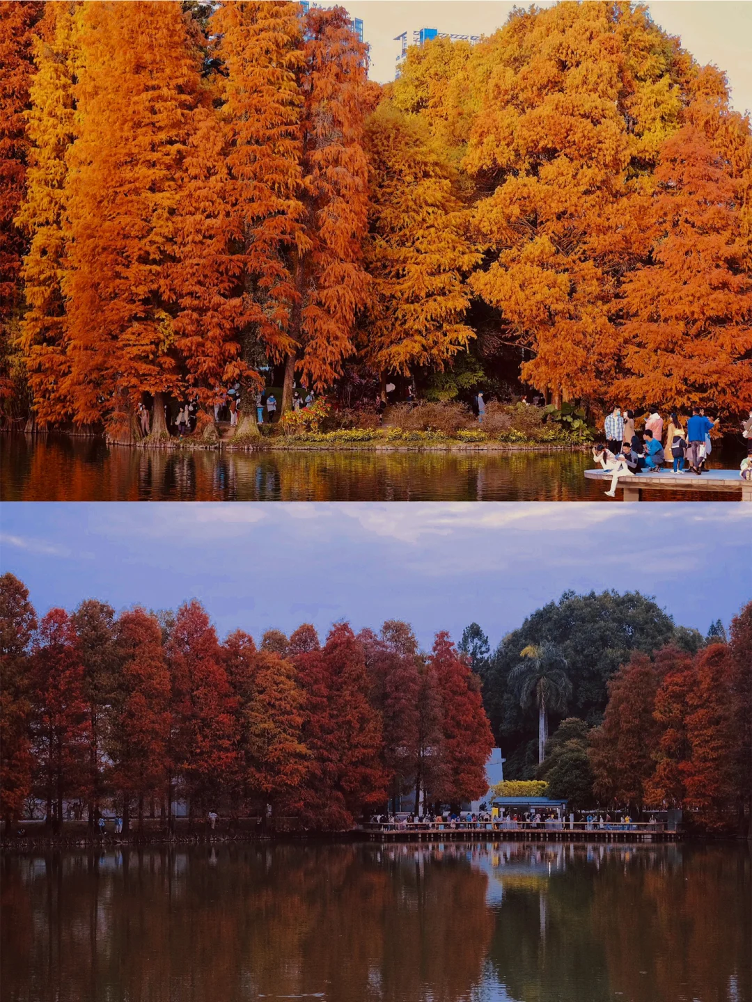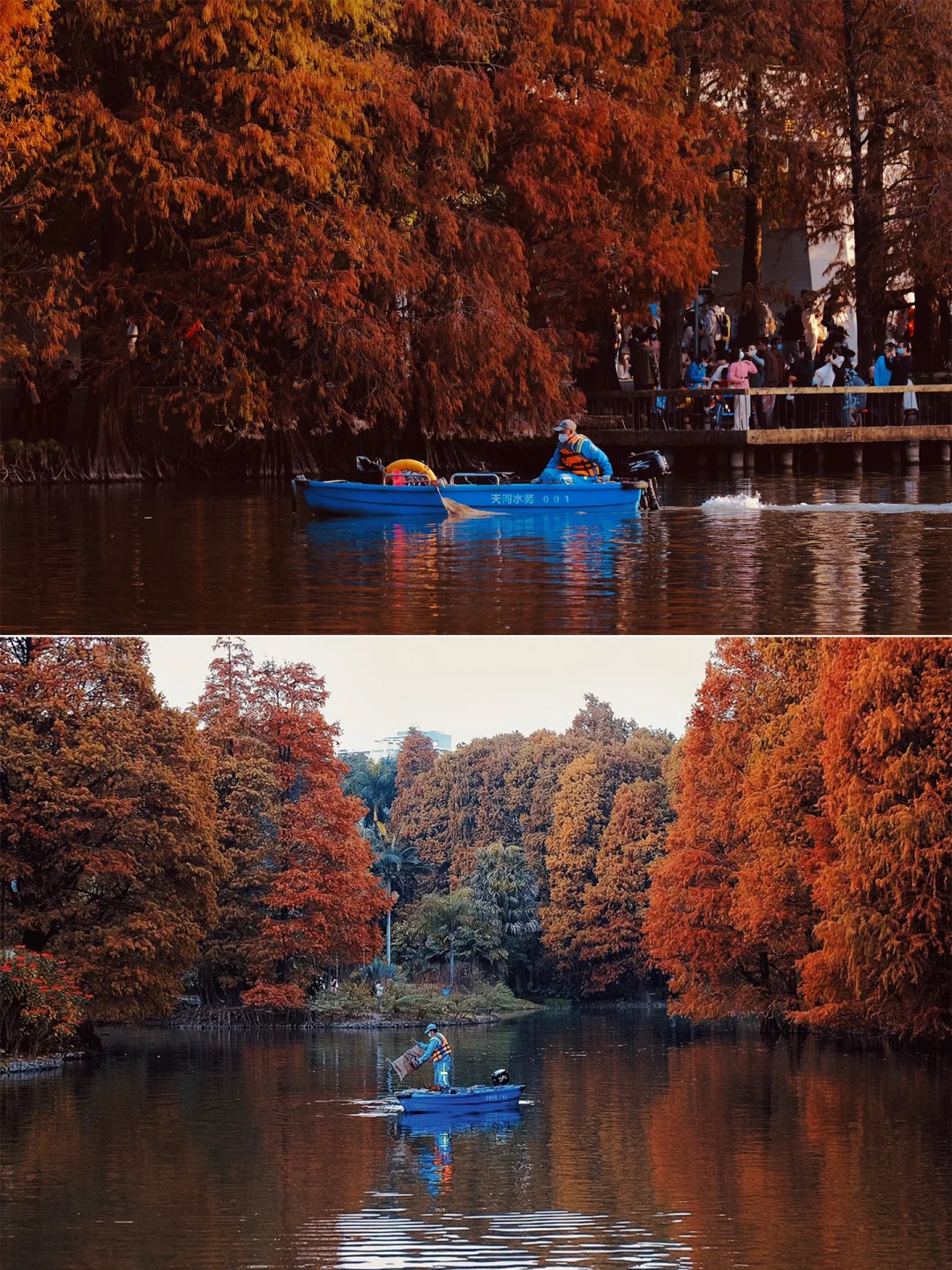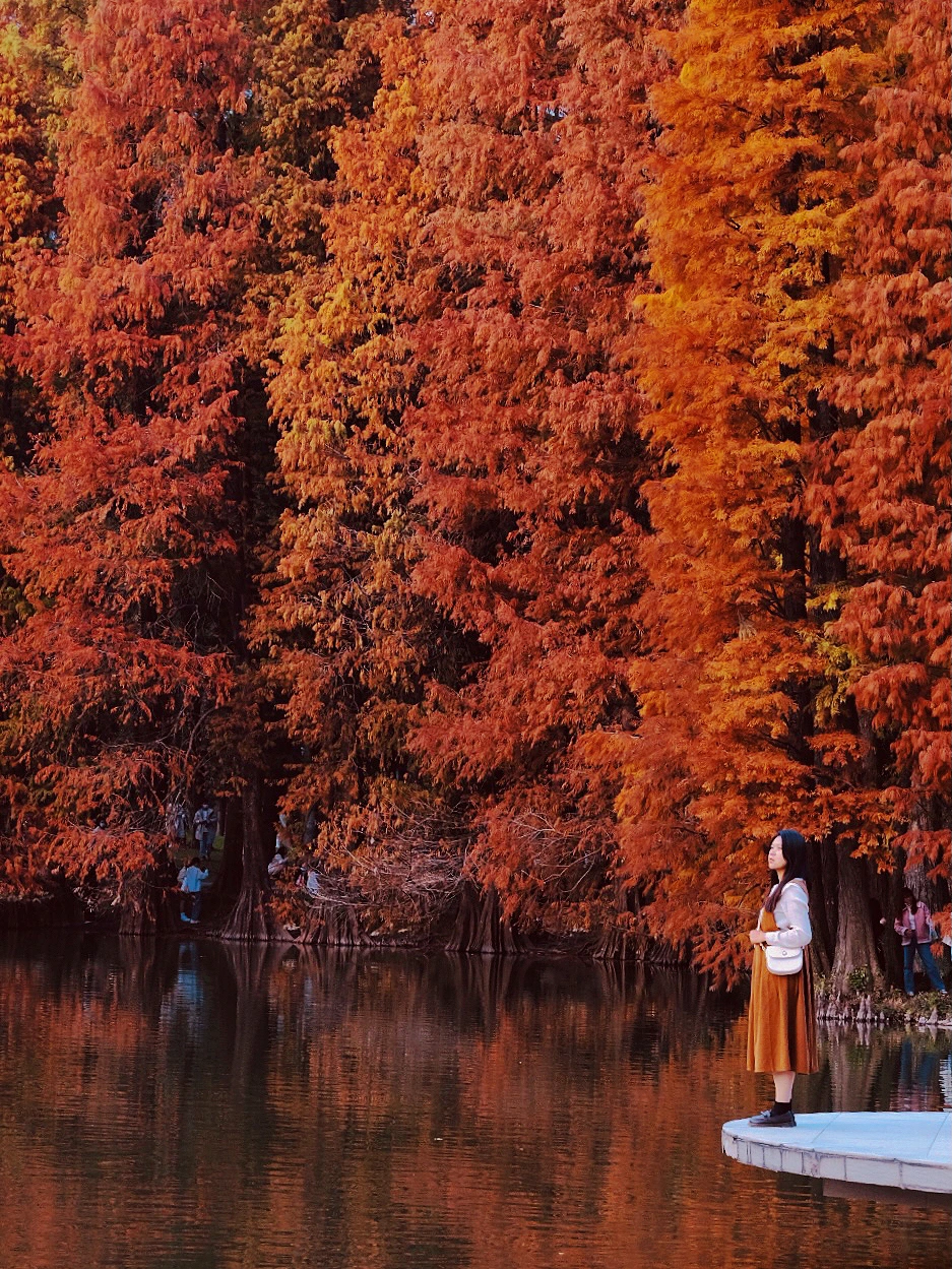 最近广州的落羽杉红了,周边有非常多的观赏点 最推荐还是华南植物园的落羽杉 主要是落羽杉规模非常多,在湖的两边整片都是红色,仿佛置身于油画世界般 📍广州华南植物园 🚇地铁:六号线A出口出来即可 🚗自驾:华南植物园停车场(不建议自驾,300米堵了一个小时,都是排队入场的,还不断有人加塞)🎫门票:¥20(建议在网上提前预定,现场买需要排队) 📷拍照小tips 1️⃣最好是下午去,阳光刚好,拍照氛围感拉满 2️⃣建议带个长焦,拍人带个大光圈定焦(非常多人) 3️⃣如果想拍落羽杉的话,直奔龙洞琪林就好了