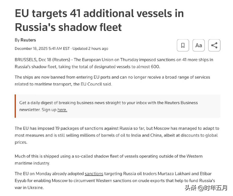 欧盟对俄罗斯影子舰队的另外 41 艘船只实施制裁,被制裁总数接近 600 艘。 欧盟理事会表示,这些船舶现在被禁止进入欧盟港口,并且不能再获得与海上运输相关的各种服务。