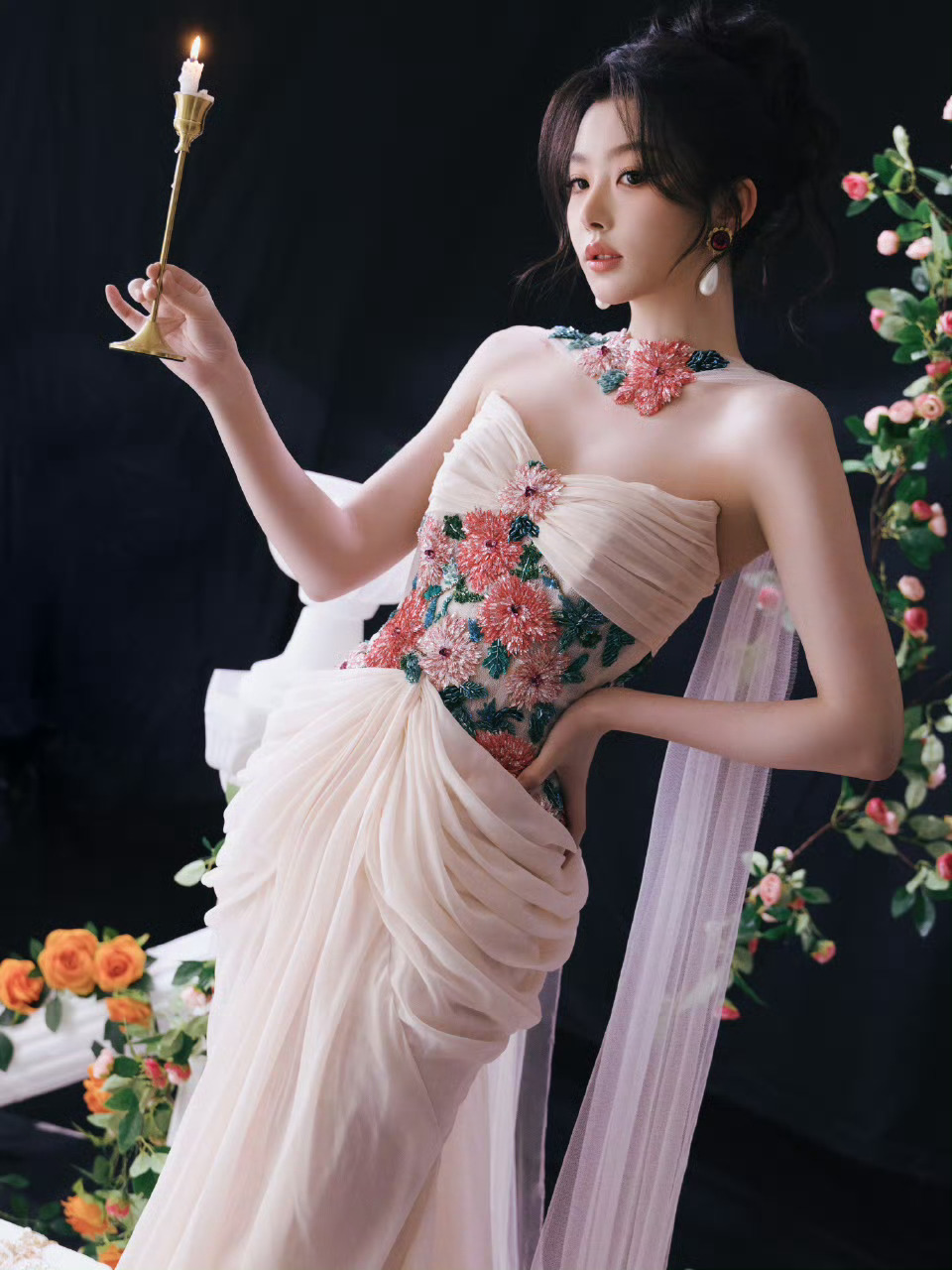 高圆圆旁边这是谁啊??身材好好啊,就是这个裙子的布料……
