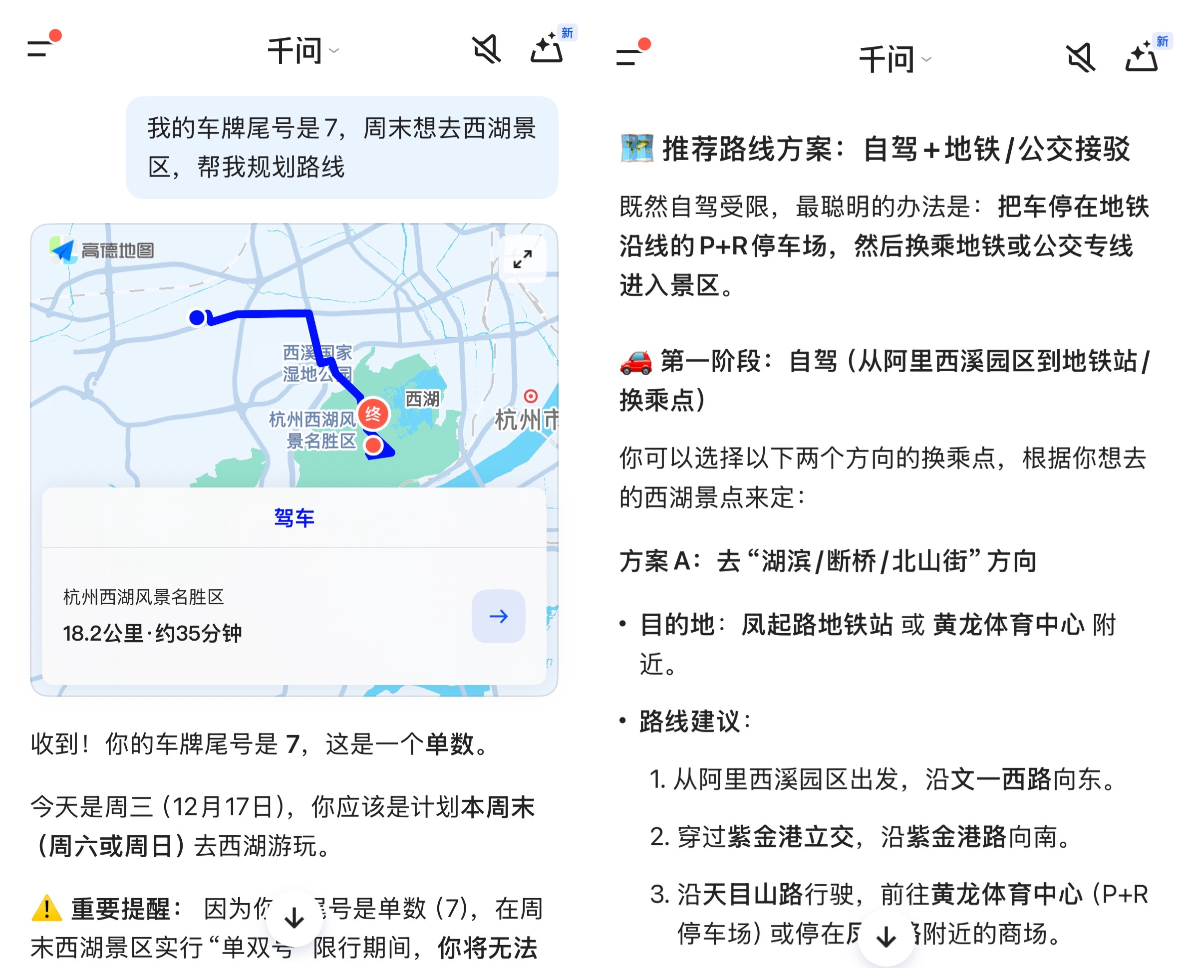 里程碑!第一个接入阿里千问的竟然是高德!以后想吃什么、去哪玩、住哪、怎么走,千问可以直接调用高德地图、扫街榜,把餐厅、酒店、位置和出行路线做成可视化卡片,一眼就懂,不用来回切App。高德接入阿里千问App更关键的是,这只是第一步,阿里体系里的消费、支付等场景都会陆续接入,AI开始真正走进日常生活。我就说,砸了这么多资源,怎么可能只想做个聊天机器人?千问APP接入阿里生态场景
