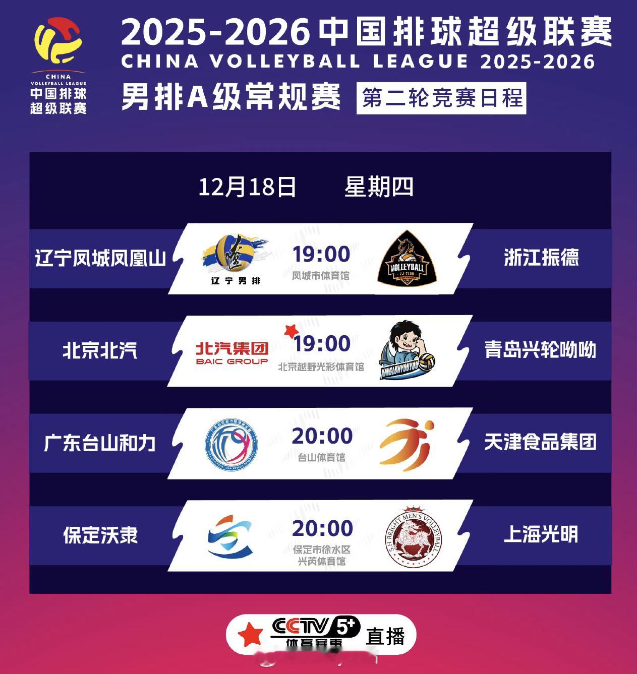 2025-2026赛季中国男子排球超级联赛今日赛程安排排超联赛2025-2026