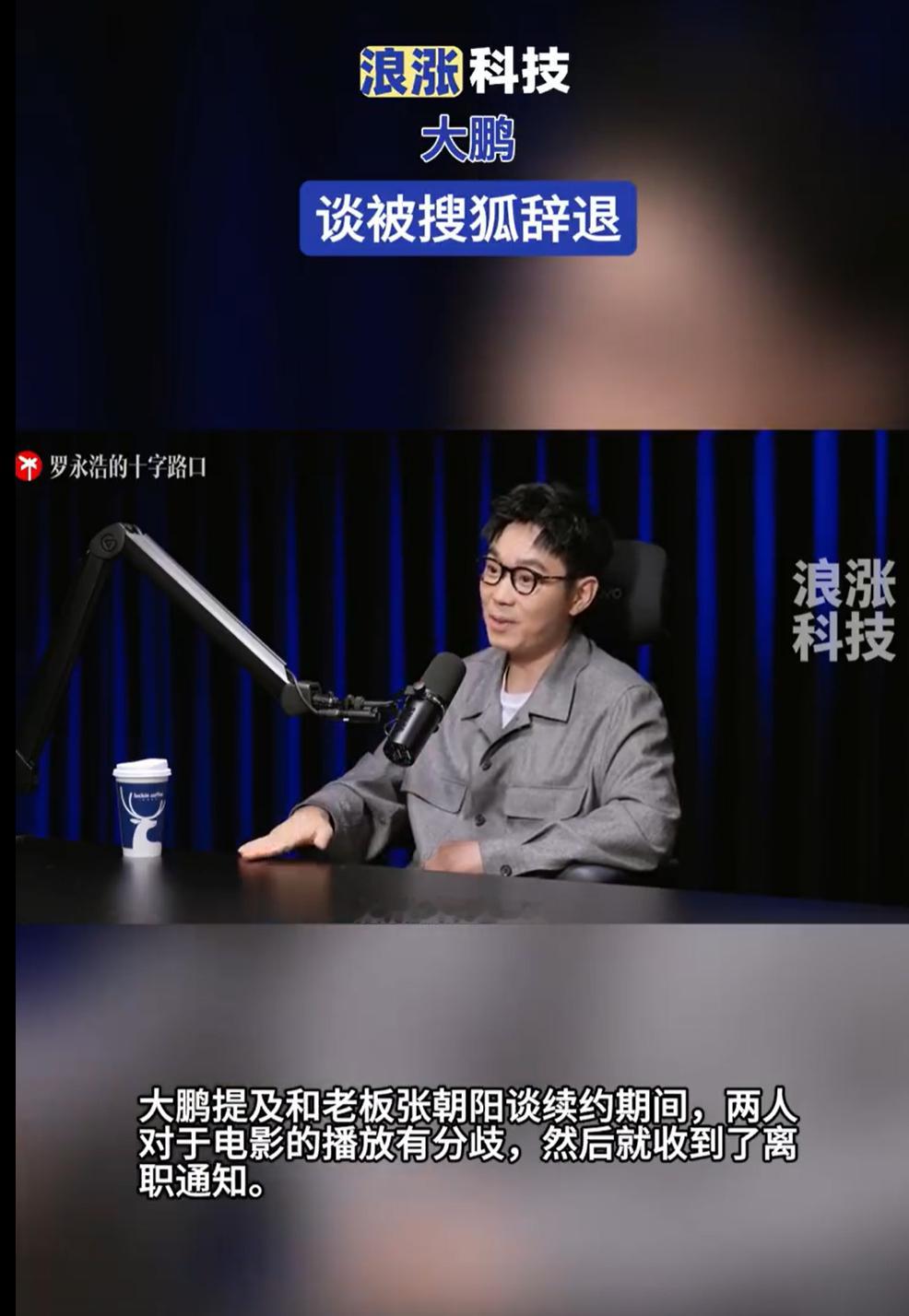 大鹏谈被搜狐辞退 我跟大鹏是前同事,当时都在清华东门,原来搜狐网络大厦的12层,之前一直不知道大鹏离职的原因。只能说,被辞退,也成就了大鹏,自己做主,才是最好的归途