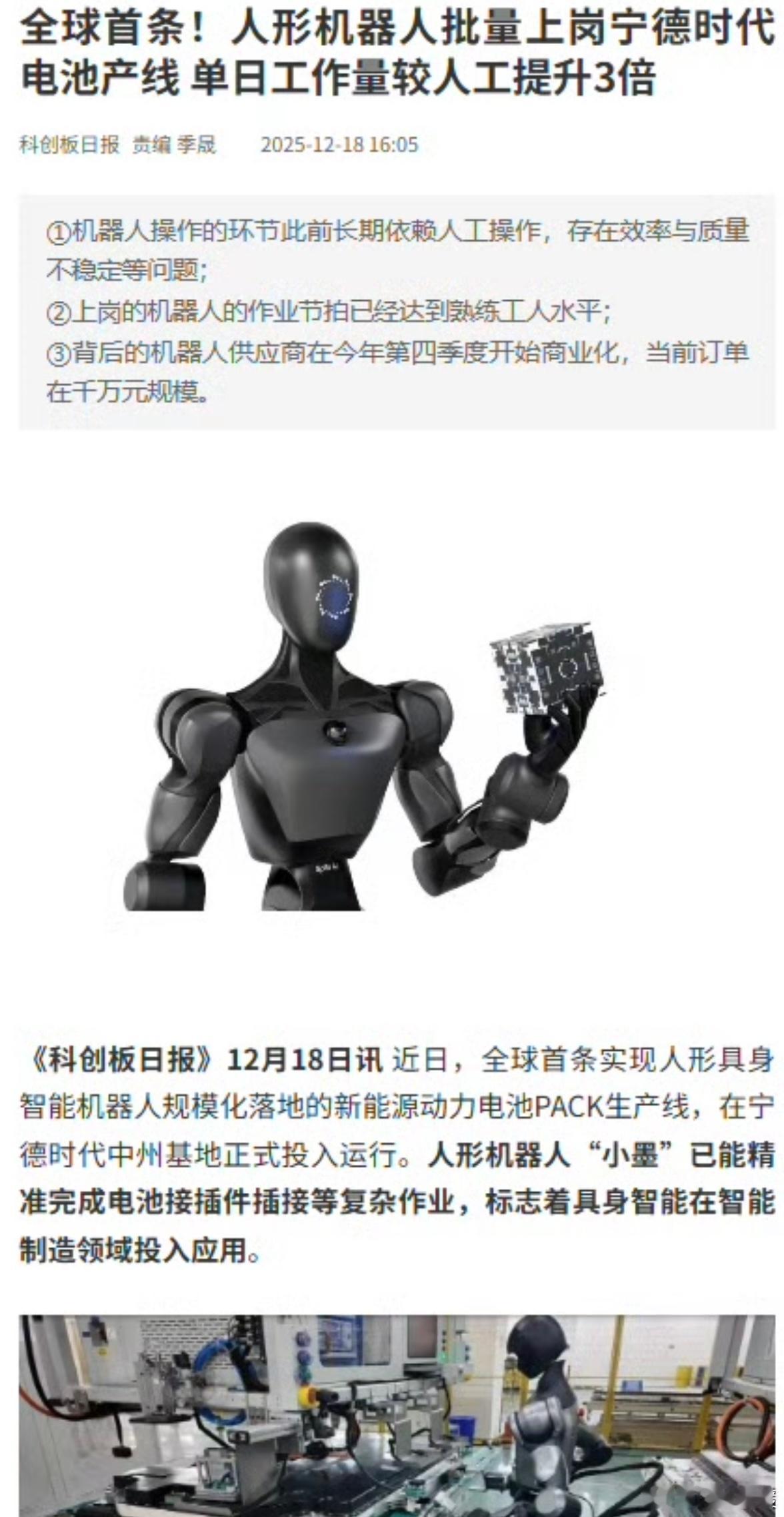 人形机器人批量上岗宁德时代机器人批量上岗了原来机器人刚毕业也得进厂打工啊不过我很