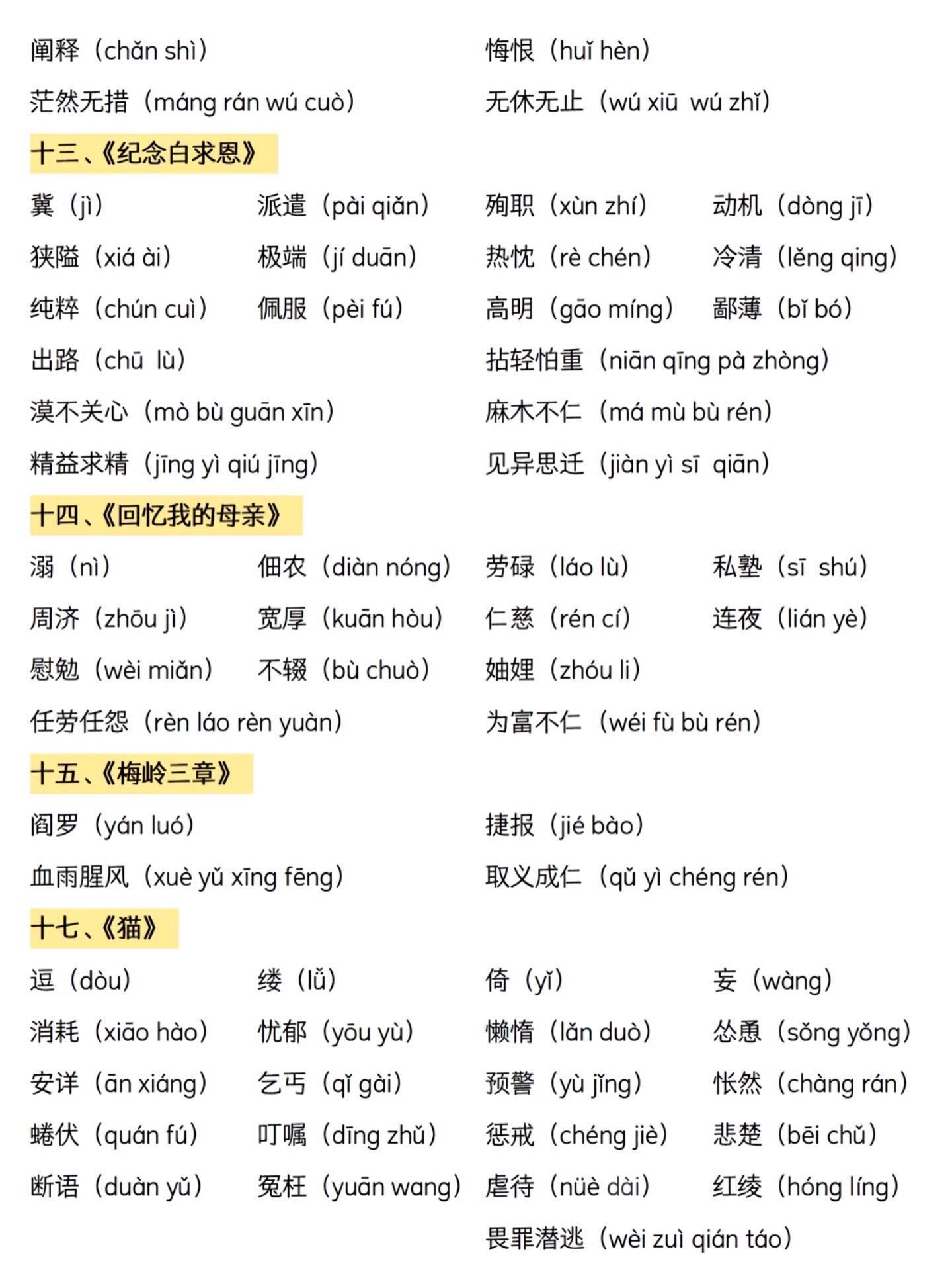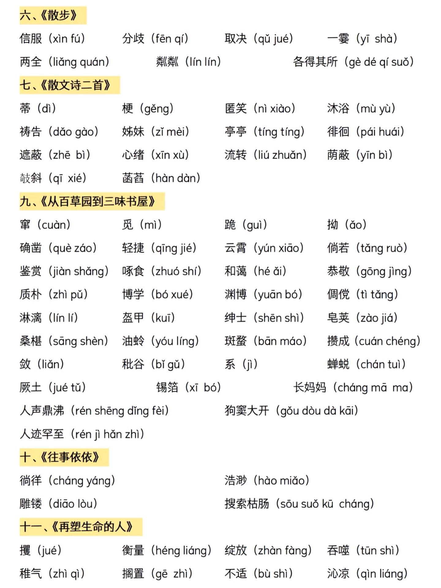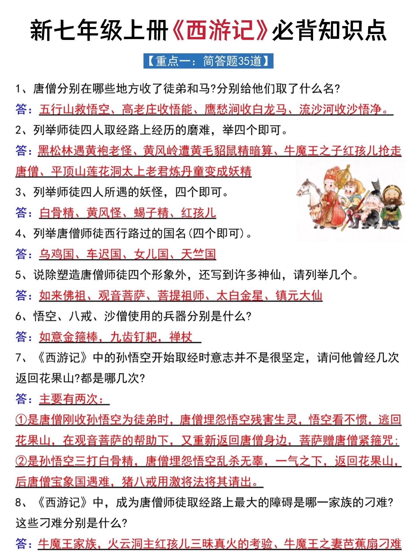 七年级上册期末考试全册复习重点必背常考。七年级上册语文知识点,老师给大...