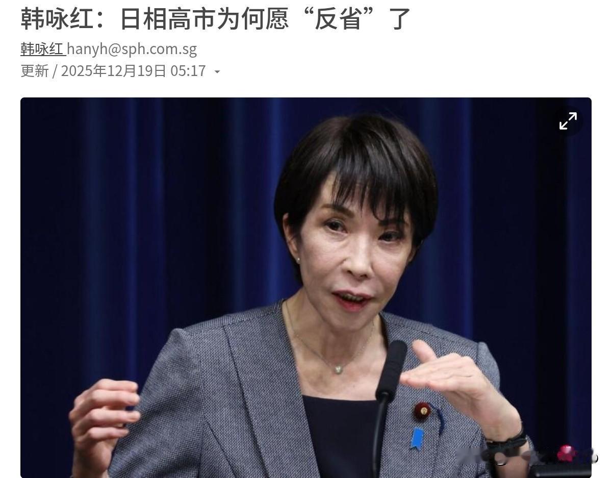 联合早报刊文表示,高市早苗的立场已经软化很多了!高市早苗不得不改口!12月19日