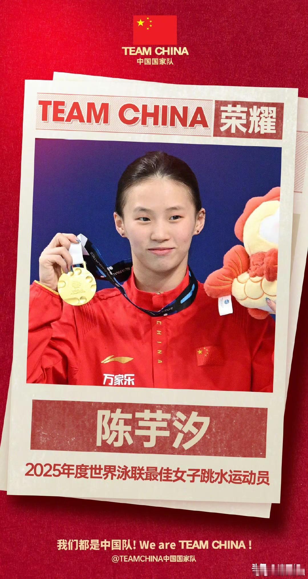 近日世界泳联官宣重磅喜讯,中国跳水小花陈芋汐当选2025年度最佳女子跳水运动员,