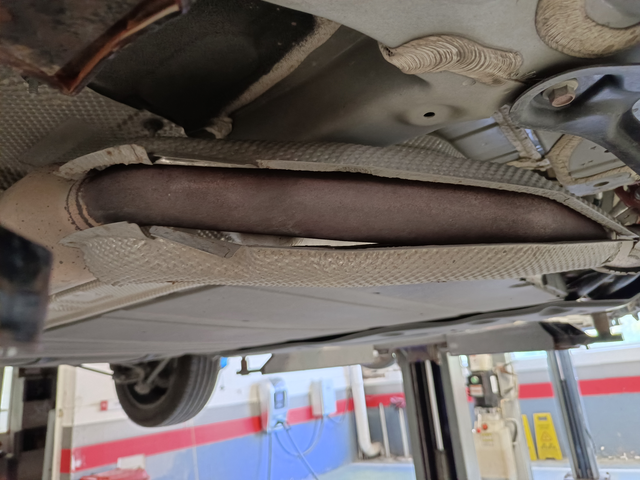 希望各位车主和准车主都注意 近日发现汽车排气管底部隔热管脱焊,到就近4儿子店维修