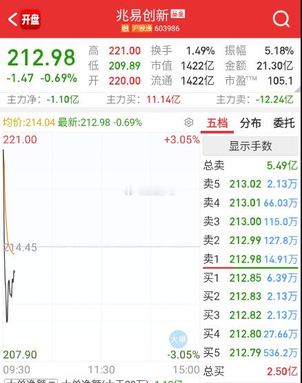 $兆易创新 sh603986$ 这个盘前又是存储业绩炸裂,又是字节入股小作文,开盘就这样。。。