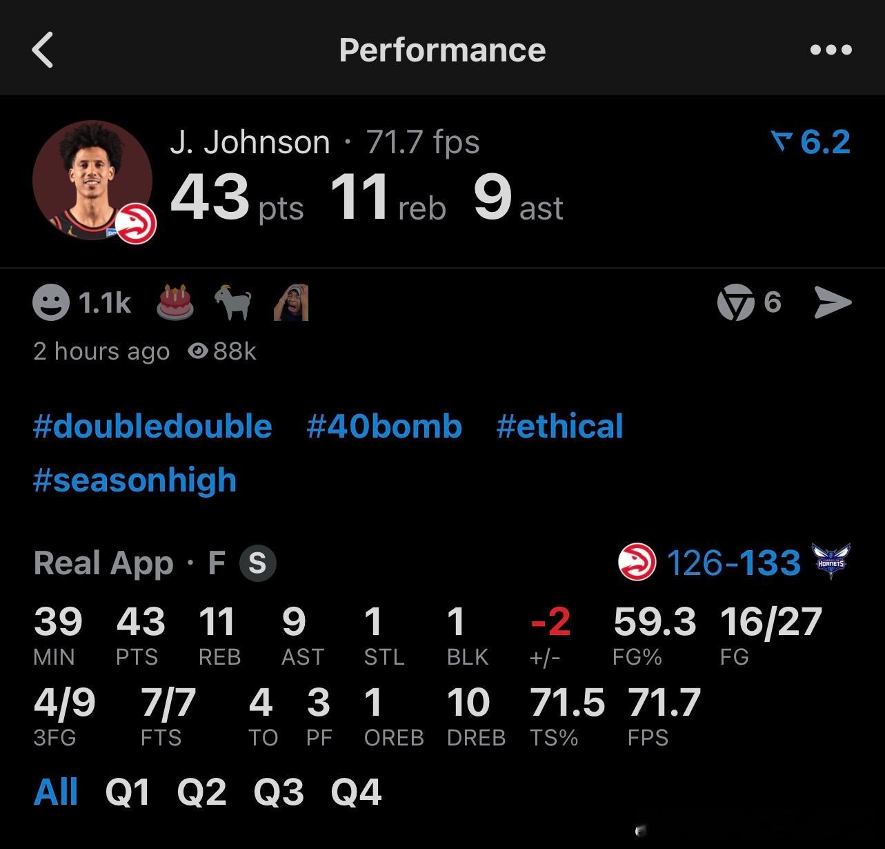 NBA 跑男40+准三双,三球生死时刻三连击接管比赛,JJ空砍的一天。