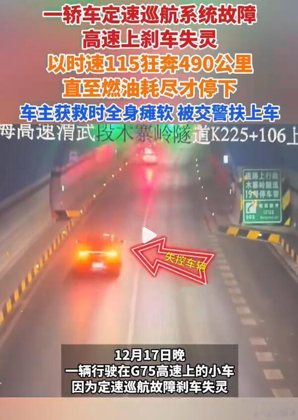 确实是惊心动魄,人没事就好。其实这位车主挺幸运的,这一路上的车流量都不大,还能做到左右闪躲,而且心理素质也很棒。高速巡警的处置也很到位,在前面开路,争取了足够的安全空间。我记得,好像几年前有过一个类似的案例,也是车子刹车失灵,但高速巡警的处置方式更激进一些,是用一辆警用皮卡在失控车子前方,逐渐减速,从前面顶住后车,一点点的减速刹停,其实风险还是挺大的。轿车刹车失灵以时速115狂奔490公里轿车刹车失灵狂飙车主获救时全身瘫软