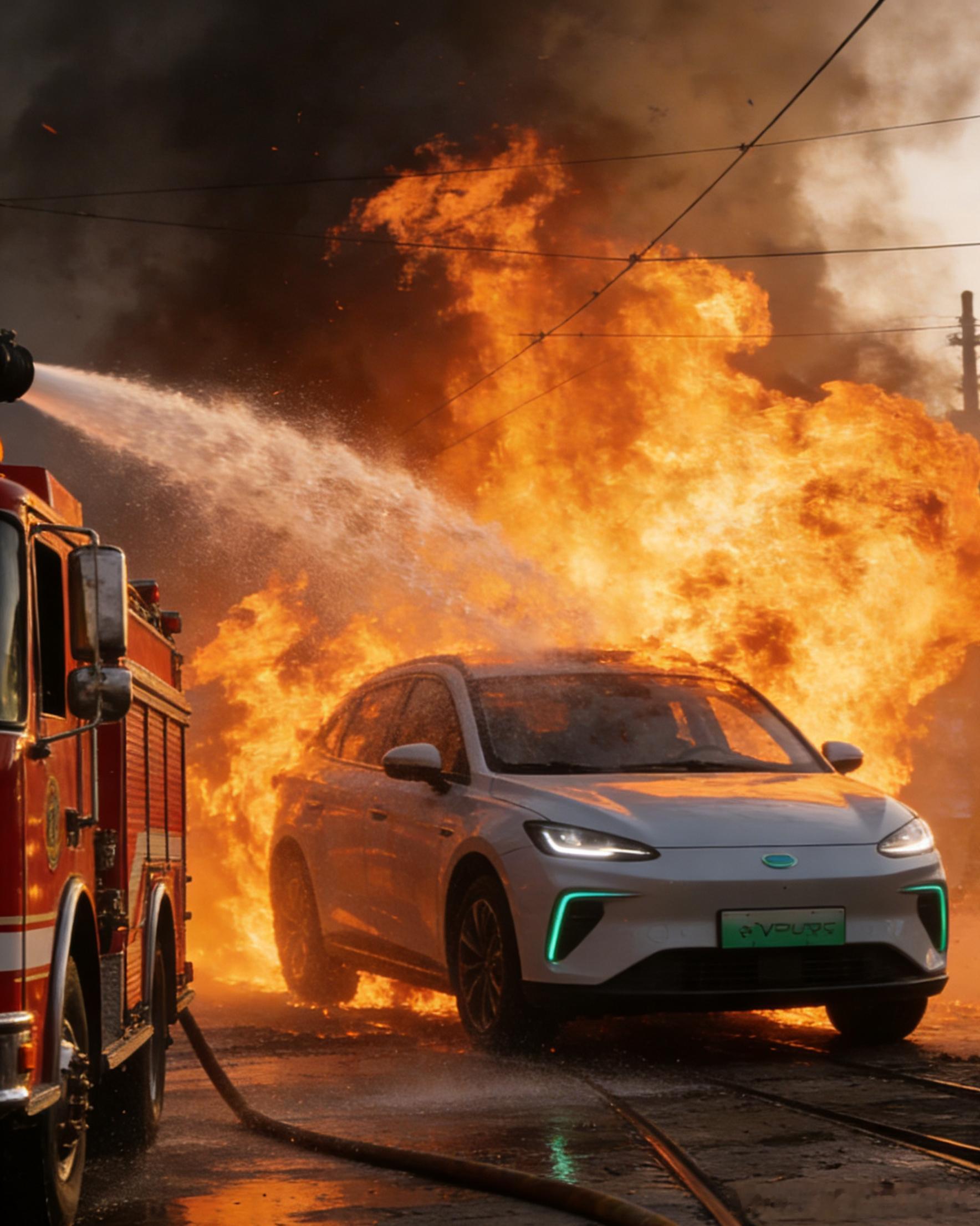 冷知识暴击:油车起火浇水能速灭,电车却要很长时间才能浇灭。刚开始还可能越浇越凶!为什么?核心原因是锂电池遇水反应产氢气,直接给火焰“喂燃料”,有论文数据显示:喷淋方法浇灭电车起火,灭火效率才23%!别再说消防车不给力,灭电车火,没海量水,没长时间,根本搞不定! 有专利显示:灭火器换用3秒降温200℃的全氟己酮灭火剂,可能更有效,但投入要增加。