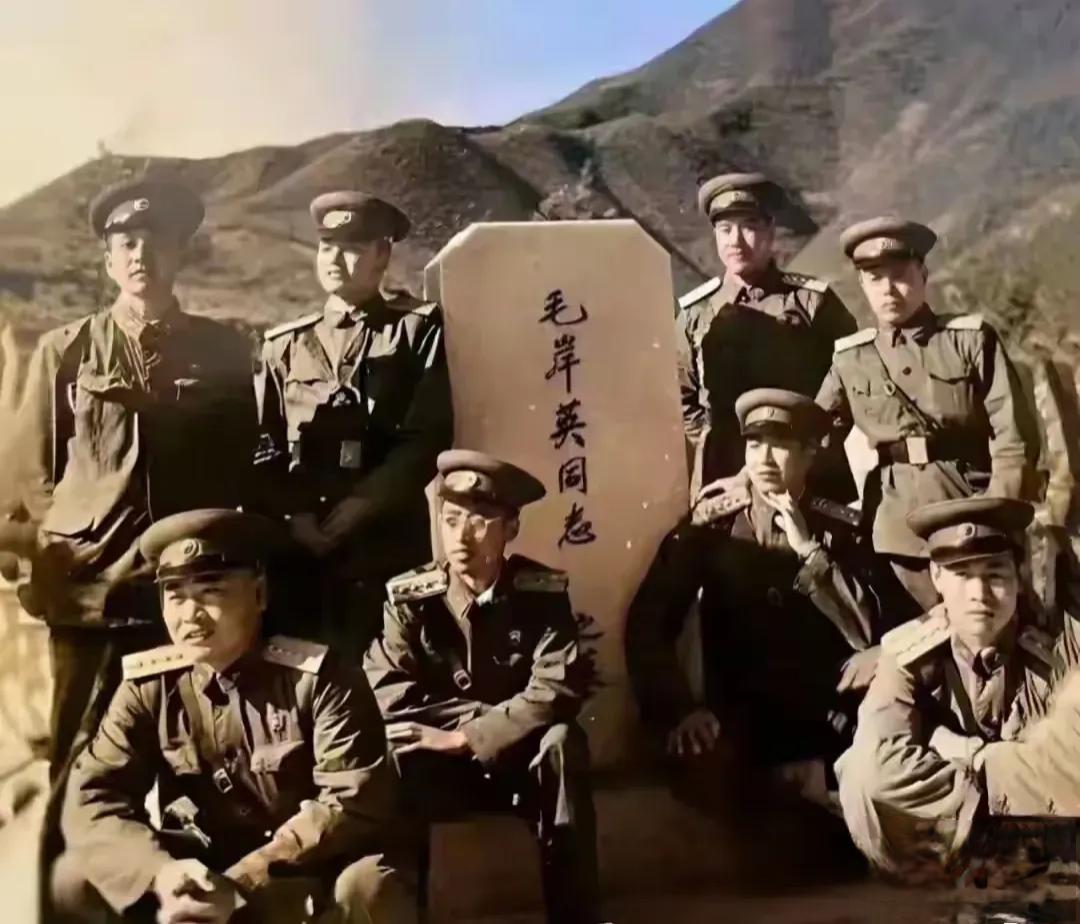 志愿军军官和毛岸英墓碑的合影,就要回国了,和毛主席的儿子道个别。 那八位志愿军指挥员,应该是知道毛岸英的真实身份的。他们可能认识生前的毛岸英,也可能不认识。但他们知道,毛岸英就是毛主席的儿子。 照片就定格在那一瞬间。几位穿着军装的汉子,站在那块朴素的石碑前,神情肃穆。背后是朝鲜的山野,安静得很。他们快要回国了,这一走,不知何时还能再来。临走前,特意绕了路,过来道个别。不是向一位高级指挥员告别,而是向一位战友,向一位他们统帅的儿子,作最后的致敬。 你想想那个场面,挺触动人的。这些军官们,都是从枪林弹雨、冰天雪地里滚过来的,什么生死场面没见过。可站在那块墓碑前,心情肯定复杂。毛岸英牺牲的时候,才二十八岁,跟他们中间好些人的弟弟、甚至孩子的年纪差不多。他本可以留在后方,留在父亲身边,但他没有。他跟着百万普通志愿军战士一样,过了鸭绿江,进了朝鲜,最后把生命留在了那里。这事,当时没多少人知道,保密工作做得好。但这些军官,或许是因为级别,或许是因为偶然的机缘,知道了这个秘密。知道了躺在这里的“刘秘书”,就是毛主席的长子。 知道和不知道,感受是天差地别的。如果只是一个普通的、英勇牺牲的战友,怀念是纯粹的怀念,带着痛惜和敬意。可知道了他是谁,那份敬意里,会掺进更多沉甸甸的东西。你会想到他的父亲,那位运筹帷幄的领袖,在接到儿子死讯的那个深夜,独自一人坐着,默默抽烟,把湿透的烟头放进抽屉。你会想到“送子参军”这四个字背后,一个家庭真实的、巨大的牺牲。那种感觉,不仅仅是痛惜一个青年,更是感受到一种令人震撼的、无声的承诺和表率。 有人可能会说,这不也是“特殊”对待吗?那么多普通战士的墓,可能都找不到了,为什么单单对他的墓这么清楚,临走还要来合影?这话看似有理,却有点没摸着那个时代的脉搏。在那个讲究“官兵一致”、追求“平等”的革命队伍里,毛主席恰恰是用这种最决绝的方式,堵住了任何可能关于“特殊化”的嘴。我的儿子和你们的儿子一样,上前线,该牺牲就牺牲,没有例外。这份“特殊”,不是特权,而是率先垂范的极致,是把自己最珍贵的东西,押在了信仰的天平上。军官们来告别,告别的不仅是一个青年毛岸英,更是这种“没有例外”的精神象征。他们心里明白,总司令的儿子和他们自己的兵,埋在了同样的黑土地上。 看看毛岸英赴朝前跟父亲说的话吧。他说要“锻炼锻炼”,毛主席回的是“那是一定的”。很平常的对话,就像千千万万送儿参军的父亲一样。可这平常背后,是惊涛骇浪。建国才一年,百废待兴,领袖的儿子隐姓埋名去最危险的前线,这件事本身,比任何动员令和讲话都有力量。它告诉所有指挥员和战士:这一仗,我们必须打赢,也值得付出一切,从上到下,无人可免。 那张合影里的军官们,后来都回到了祖国,继续建设他们用鲜血保卫过的山河。他们很少谈起那次告别,就像他们很少谈起战场上的许多细节。有些东西太沉了,放在心里比挂在嘴上更妥帖。但他们肯定一辈子都记得,在朝鲜的那个清晨或黄昏,他们站在那座朴素的坟茔前,心里翻涌过什么。那是对战友的告别,也是对一个时代誓言的回望——我们说过平等,说过牺牲,说过一切为了新中国,你看,我们是真的。 如今,我们隔着漫长的岁月看这张老照片,看那些模糊却坚毅的面孔。它提醒我们,英雄主义不只是冲锋陷阵的壮烈,更是选择背后的重量。最高的荣誉,有时恰恰是放弃任何形式的特殊,甘愿成为普通一兵,并承担那最残酷的“普通”代价。毛岸英的墓,和千千万万无名烈士的墓一起,构成了共和国最厚重的基石。那八位军官的深深一瞥,和无数母亲望向远方的目光一道,织成了历史里最复杂的深情。 各位读者你们怎么看?欢迎在评论区讨论。