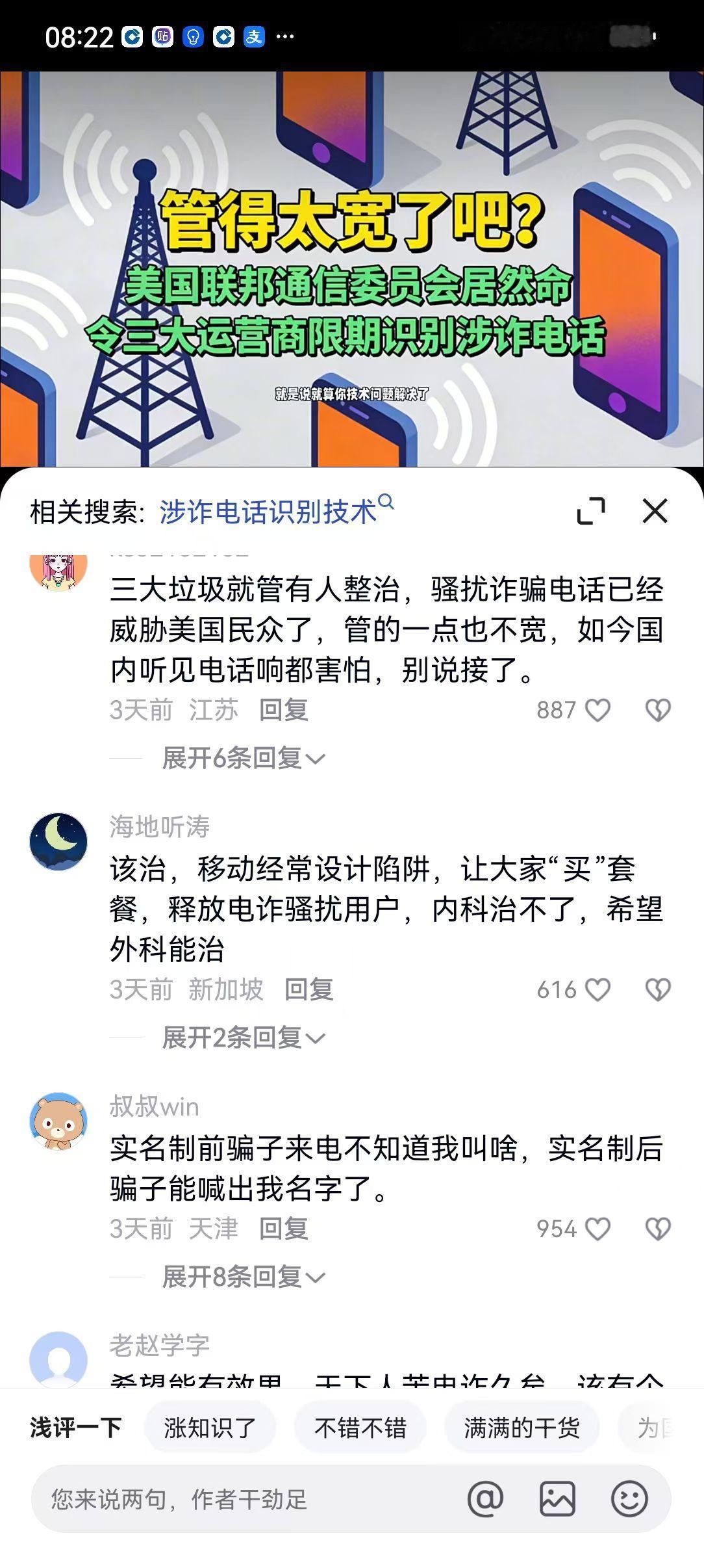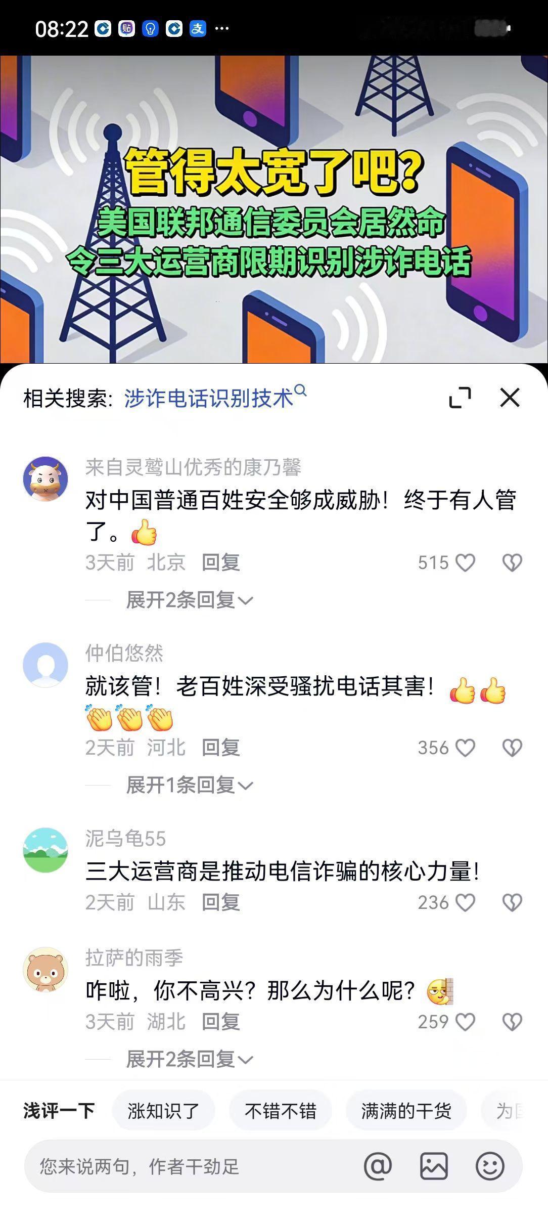 美国有关部门要求中国三大运营商识别诈骗电话,没想到网友一片叫好…现在解决电诈全靠