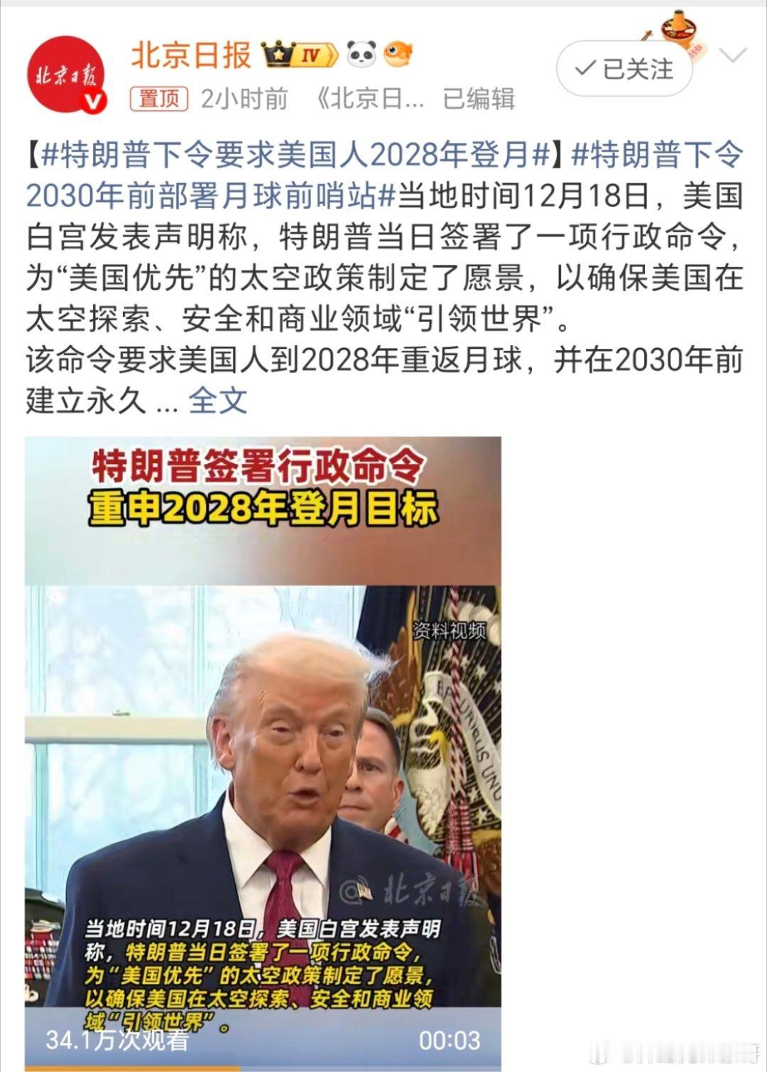 特朗普下令要求美国人2028年登月这是下令要求能管用的吗?就算真的能登入上去,就