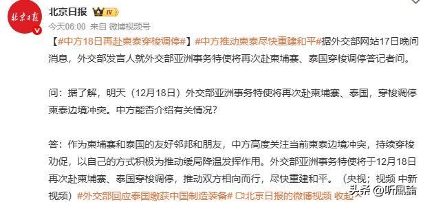柬埔寨和泰国边境的炮火还没停。12月18日,中国外交部亚洲事务特使又坐上飞机,往柬埔寨和泰国飞去了。这是中国第三次派人去调停这场冲突。 柬埔寨这次玩得有点大。他们想找美国帮忙,想靠美国来压泰国。但美国真的靠得住吗?以前美国答应别人的事,最后都没做到。柬埔寨要是真信了美国,以后吃亏的还是自己。 中国跟柬埔寨关系一直很好。中国帮柬埔寨修路、建工厂,还签了《中柬命运共同体行动计划》。现在柬埔寨突然去找美国,这不是打中国的脸吗?而且柬埔寨那些电信诈骗园区,坑了不少中国人,洪森家族还跟他们有关系。 泰国那边也不好惹。泰国空军炸柬埔寨的指挥所,还顺便炸了几个诈骗园区。泰国老百姓都支持政府这么做。柬埔寨要是继续跟泰国打下去,吃亏的肯定是自己。 中国这次派特使去,就是想劝两边坐下来谈。中国是泰国和柬埔寨最大的生意伙伴,说话还是有分量的。12月18日这趟飞机,就是去给两边递台阶的。 柬埔寨现在最该做的,不是找美国帮忙,而是跟中国好好商量。中国跟泰国关系也不错,两边都能说上话。要是柬埔寨继续玩火,最后受伤的还是老百姓。 和平才是正道。柬埔寨该醒醒了。泰国柬埔寨冲突 泰国柬埔寨局势 柬埔寨泰国冲突 柬埔寨局势 柬埔寨关系 柬埔寨泰国开战 柬埔寨炮击泰国