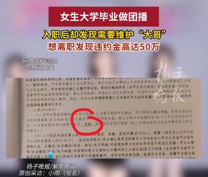 22岁女孩亲历团播陷阱:高薪诱惑背后的职场噩梦,看完你还敢轻易入行吗? "月薪八千、工作轻松、还能当网红",湖南长沙某文化传媒公司的招聘摊位前,22岁的小雨被工作人员的这番话说得心动不已。这个刚走出校门的女生怎么也没想到,自己即将踏入的团播行业,竟是一场精心设计的职场陷阱。 天上掉馅饼?招聘会上的甜蜜陷阱 去年春天,小雨在校园招聘会上遇到了这家公司。招聘人员围着她说:"你条件这么好,不做团播太可惜了。"当听到"每天工作6小时、月入八千、还有机会成网红"的承诺时,这个刚毕业的女孩彻底心动了。她当场签下三方协议,以为自己即将开启光鲜亮丽的职业生涯。 入职即变脸:合作协议里的天价违约金 等到正式入职时,公司拿出的却是份"合作协议"而非劳动合同。小雨当时没多想就签了字,直到三个月后想离职时才发现,这份协议里藏着惊天陷阱——违约金高达50万元!更讽刺的是,公司连基本社保都没给她缴纳,所谓的"轻松工作"从入职第一天就变了味。 团播真相:跳舞跳到晕厥的"轻松工作" 所谓6小时工作制完全是谎言。小雨每天要从下午两点播到凌晨,连续跳6小时热舞是家常便饭。有次她跳到晕倒,醒来后发现镜头还在对着自己。"C位主播必须一直跳,哪怕晕倒了也要爬起来继续。"更让她震惊的是,跳舞根本不是主要收入来源,真正的"核心业务"是维护那些出手阔绰的"大哥"。 灰色地带:擦边球与金钱交易 "维护大哥"有套潜规则:主播们要私下添加微信,每天发早安晚安,节日必须送祝福。有位主播光靠"大哥"打赏就能月入十万,但代价是频繁的线下陪酒。小雨亲眼见过同事在直播时故意走光,公司不仅不制止,反而鼓励这种"擦边"行为。更离谱的是,公司还经常请"大哥"来公司"考察",实则是变相的金钱交易。 行业乱象:未成年开播、夜场从业者当榜样 这个看似光鲜的行业,背后藏着多少见不得人的秘密?小雨发现,有未成年人用他人身份证开播,公司对此睁一只眼闭一只眼。团队里不少成员来自夜场和酒吧,她们靠着"会来事"月入数万,成了新主播们争相模仿的"榜样"。更可怕的是,已有主播因与"大哥"的经济纠纷被告上法庭。 离职噩梦:50万违约金压垮年轻人 当小雨提出离职时,公司立刻翻脸:"要么再播一个月,要么扣光工资,否则就起诉你!"看着合同上那醒目的50万违约金,这个刚毕业的女孩彻底慌了。幸好律师付建给她吃了定心丸:"公司涉嫌欺诈招聘,违约金条款很可能无效。就算要赔,法院也会根据实际损失调整金额。" 律师支招:年轻人如何避开职场陷阱 付建律师提醒求职者:遇到"高薪轻松"的招聘要警惕,正规公司必须签劳动合同;违约金条款必须双方协商,单方面制定的"天价违约金"无效;保留好招聘广告、聊天记录等证据,必要时可向劳动监察部门投诉。 小雨的故事给所有求职者敲响了警钟。在这个充满诱惑的时代,我们既要勇敢追梦,更要保持清醒。那些看似光鲜的"捷径"背后,可能藏着让你万劫不复的陷阱。记住:真正的好工作,从来不需要靠欺骗和套路来招人。 这事大家怎么看?评论区聊聊!