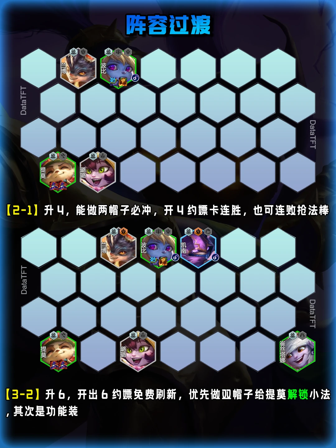 3-2升6级,开6约🆓刷新,优先做双帽子给提莫解锁小法