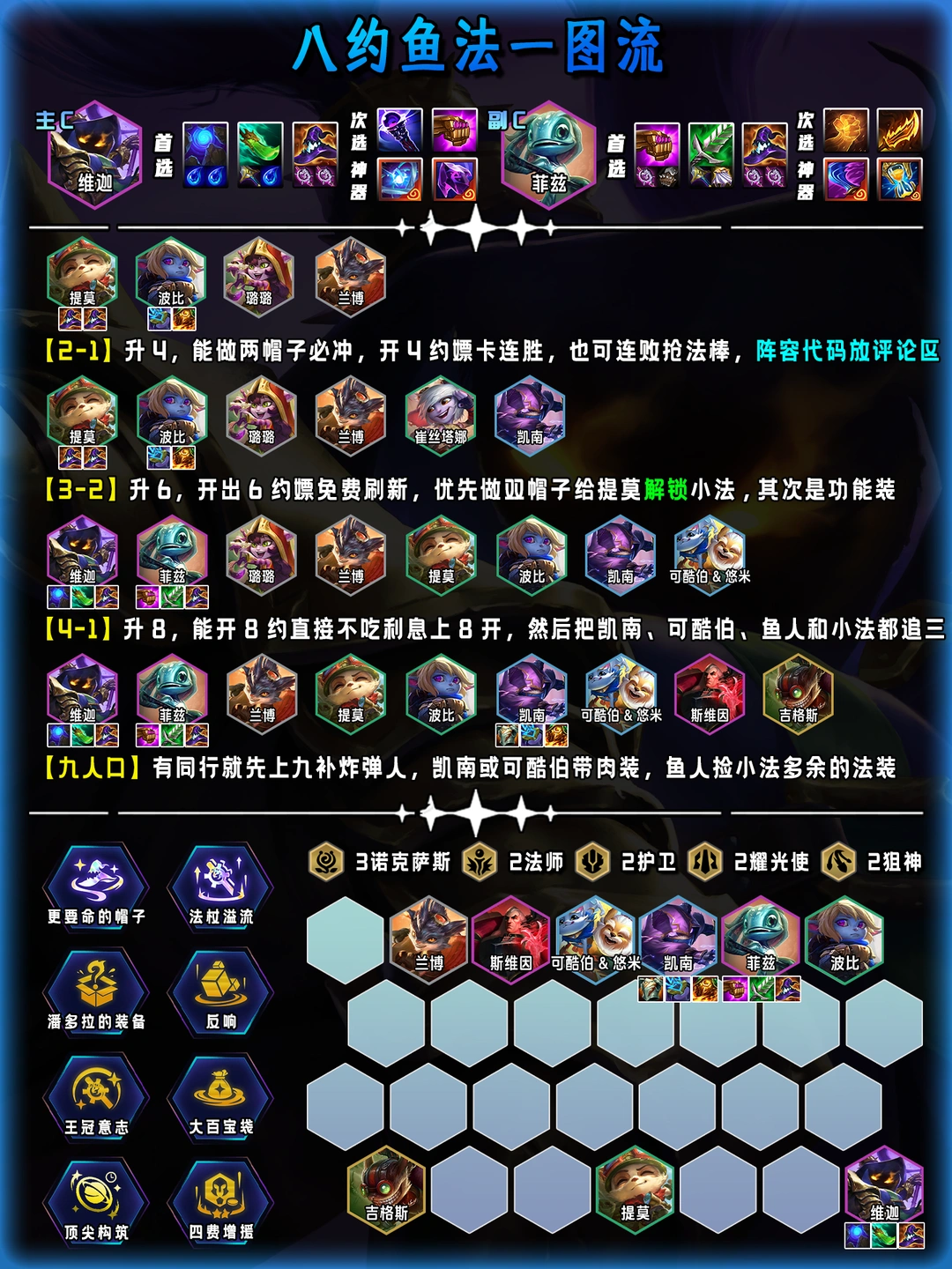 家人们!S16八约鱼法这套阵容真的杀疯了,无脑运营就能稳吃分,一图流攻略直接甩给你们👇