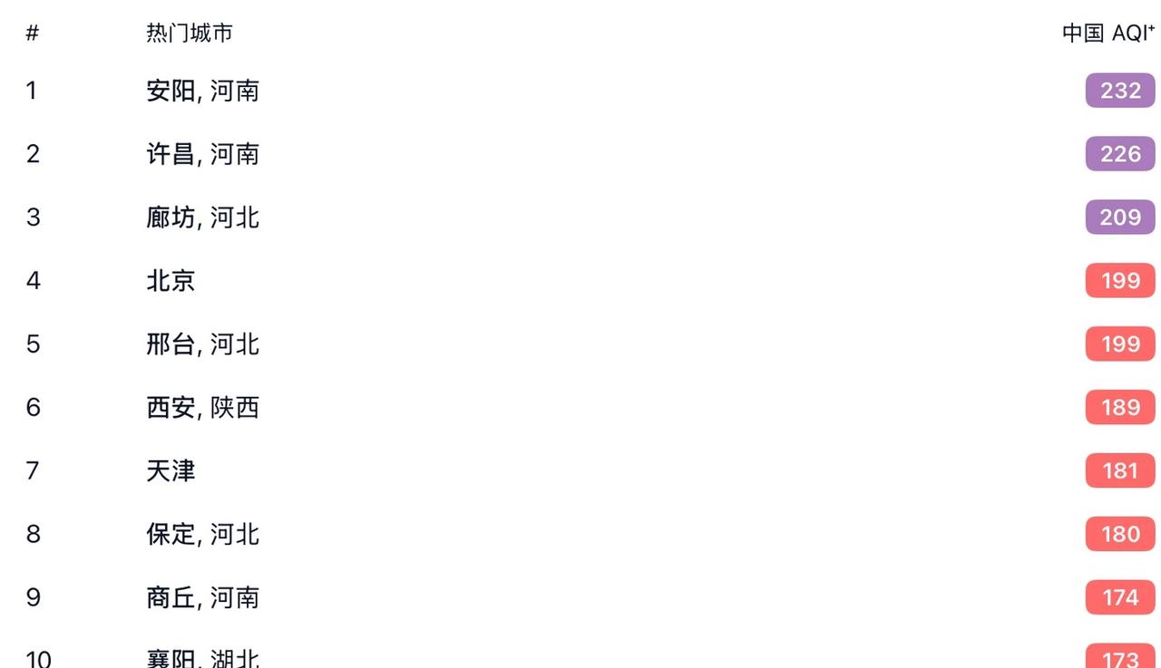 这排名唉!半壁江山了🤔…… 为啥空气总不清不楚不干不净的,焦躁😩!城市 雾霾 空气