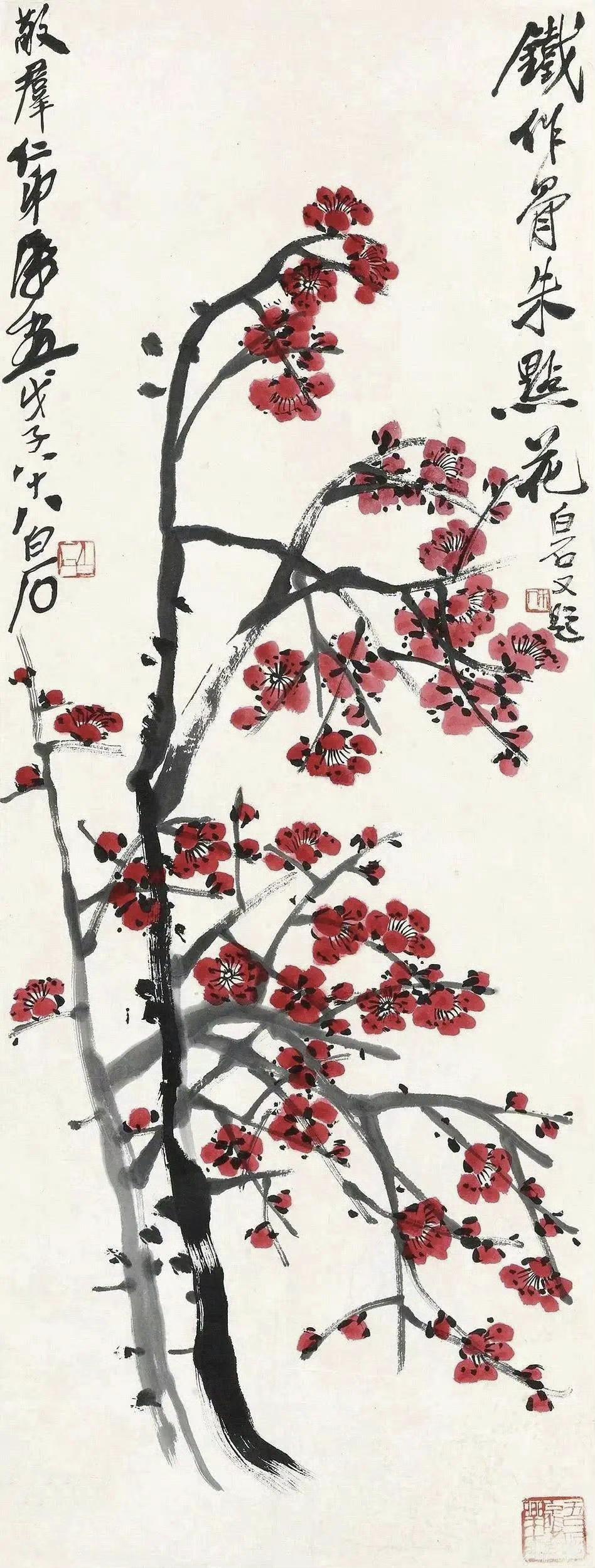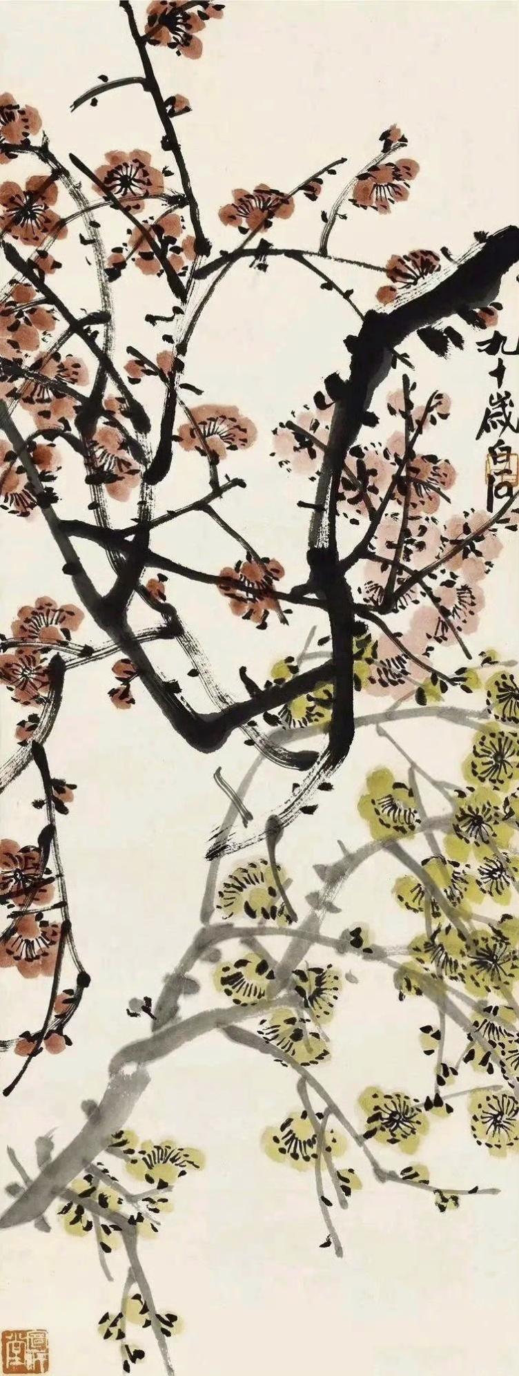 黄宾虹画梅,苍老如铁。黄宾虹的梅花作品,虽不如其山水画那样广为人知,却独具风貌,