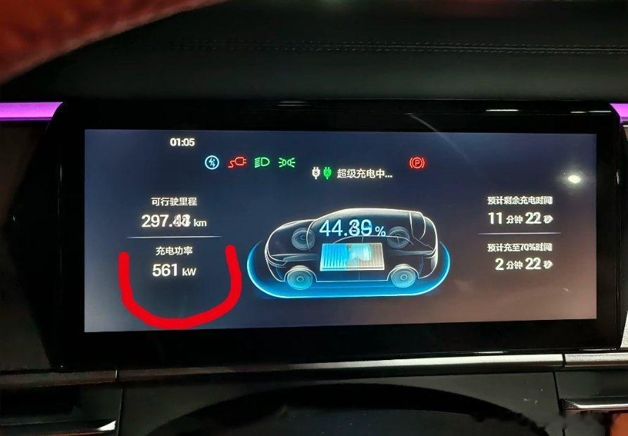 比亚迪汉L充电功率561千瓦。兆瓦闪充的实力。如果用兆瓦闪充桩就更牛了。