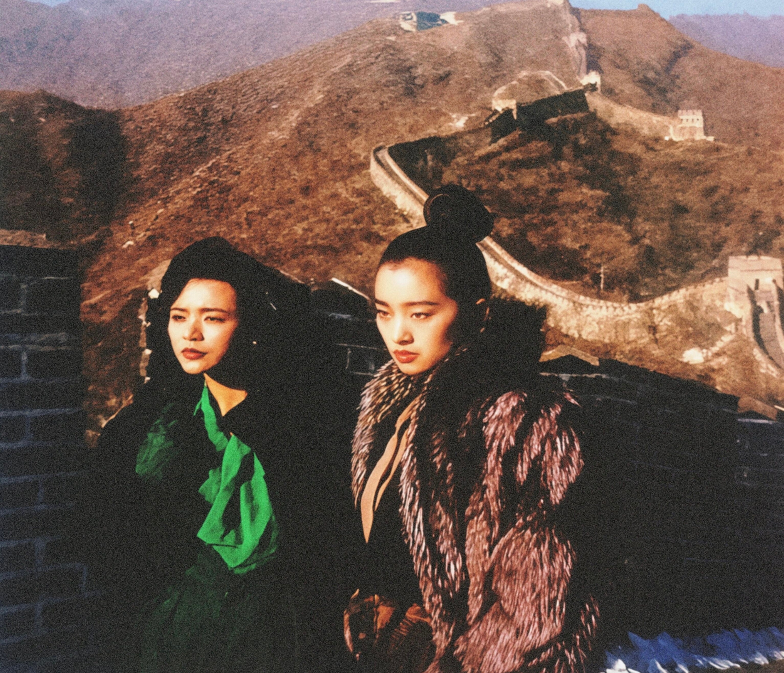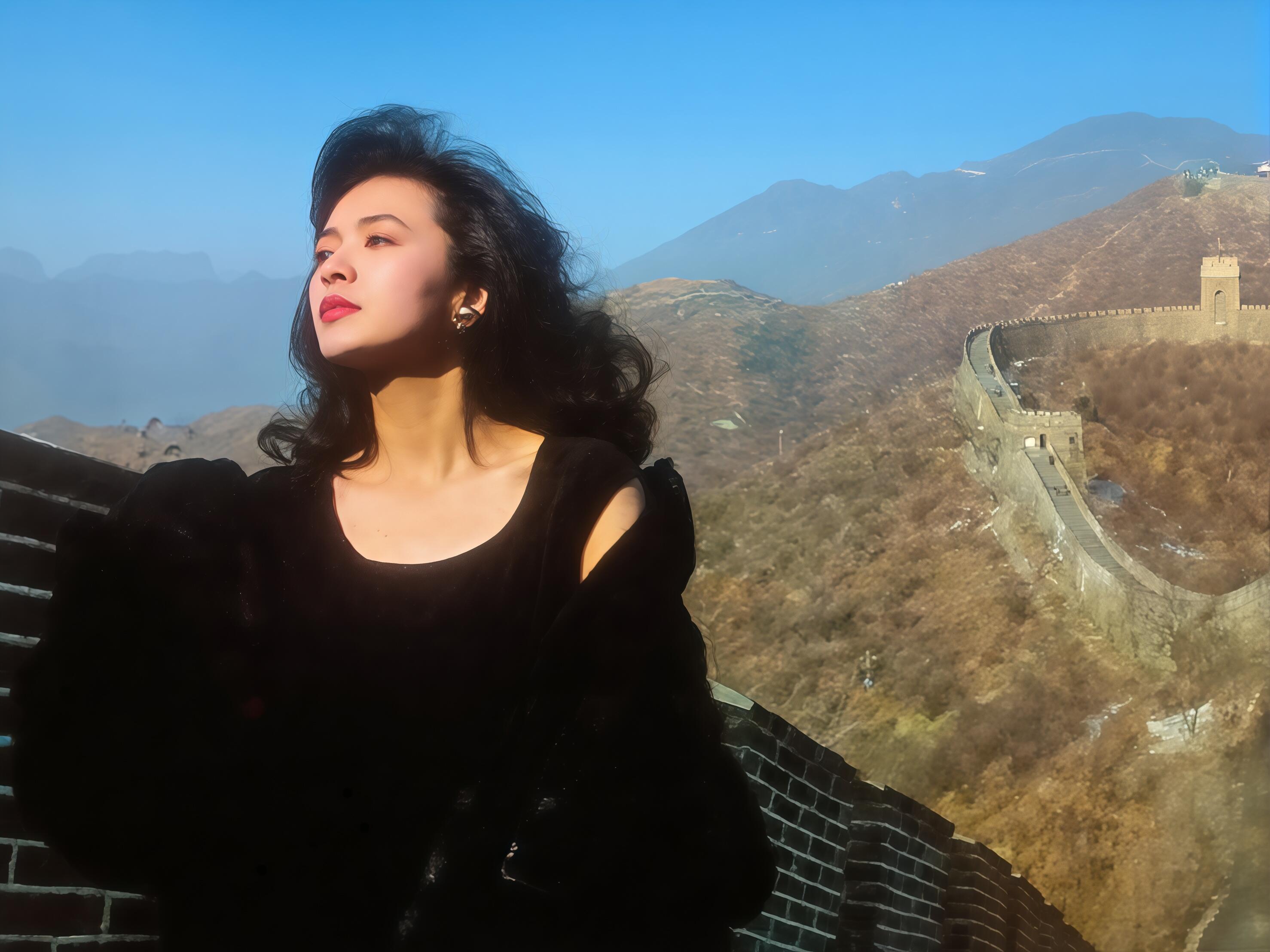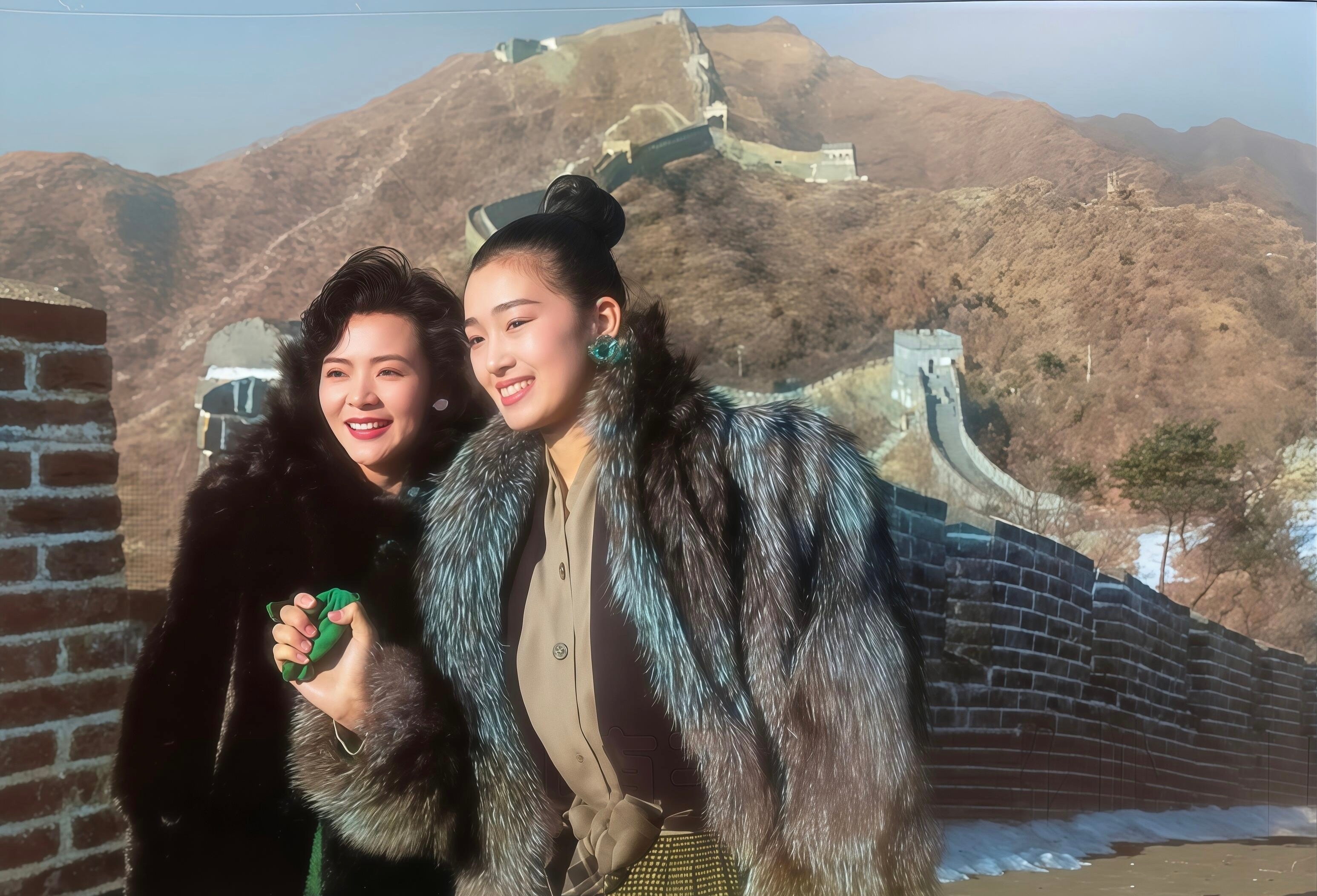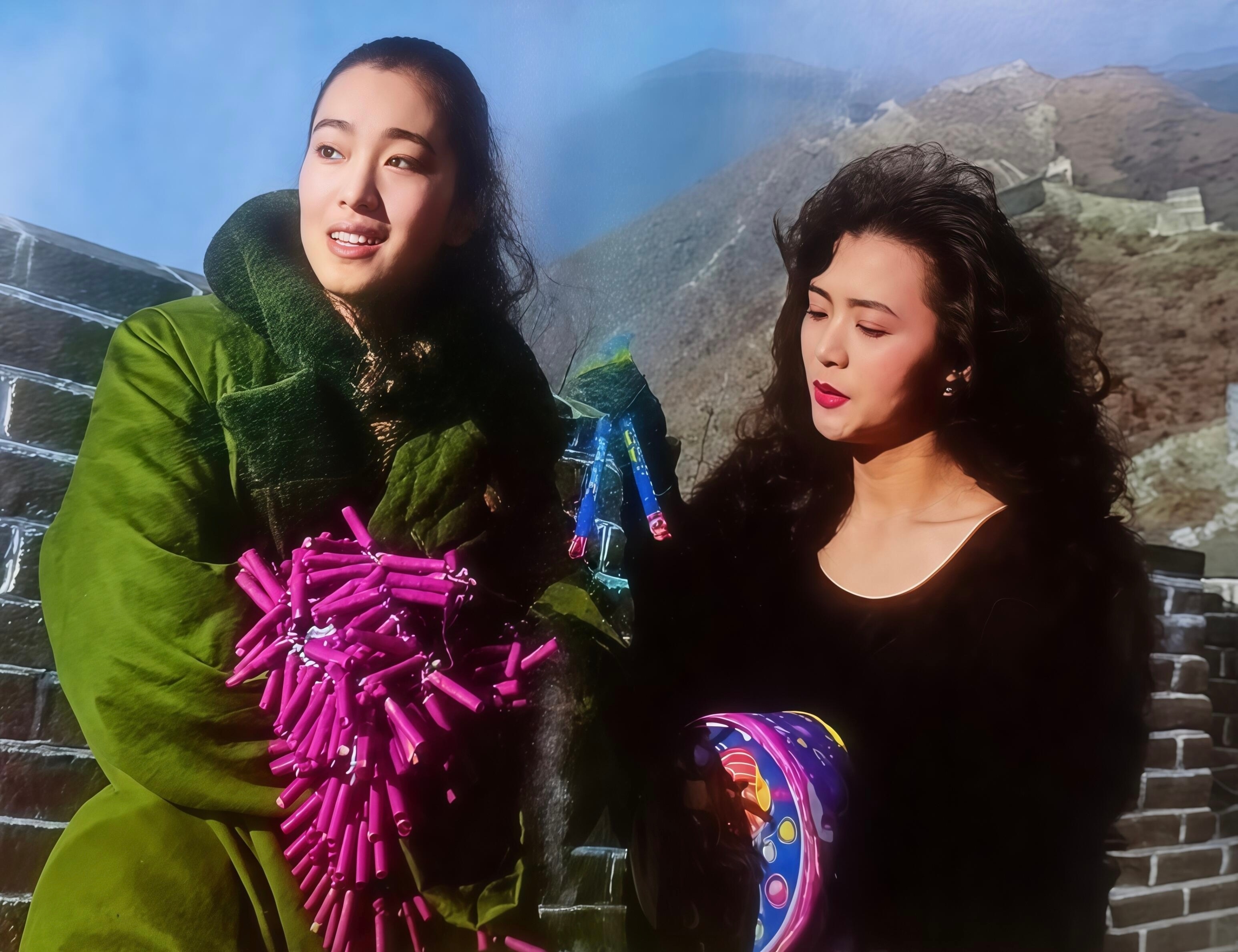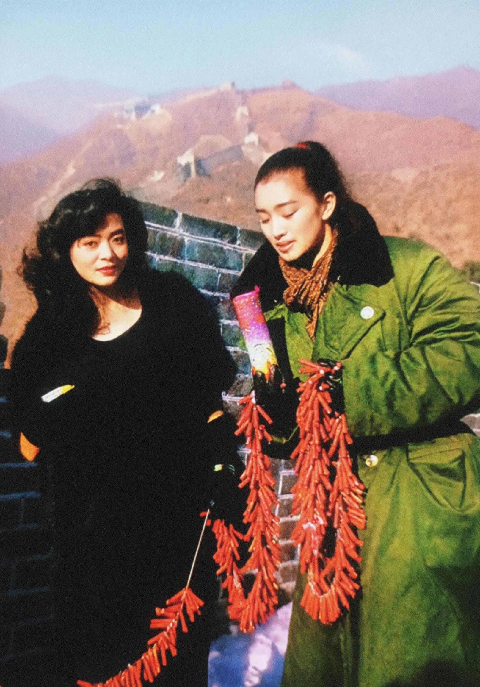 1993年陈玉莲来内地拍摄《大红灯笼高高挂》期间,和巩俐同游长城、故宫。