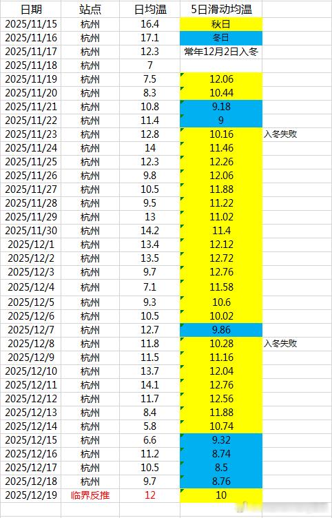 【上海杭州入冬将再次失败】上海和杭州12月13日以来的入冬进程,今天是判定日。从临界温度和今天实况气温反推,两个城市入冬应该又会失败。上海今晚20时低于0.4℃,杭州今晚20时低于9℃,才可能入冬。因此按照国家气候中心的滑动标准,两个城市都将打破最晚入冬纪录(杭州12月14日、上海12月20日)。