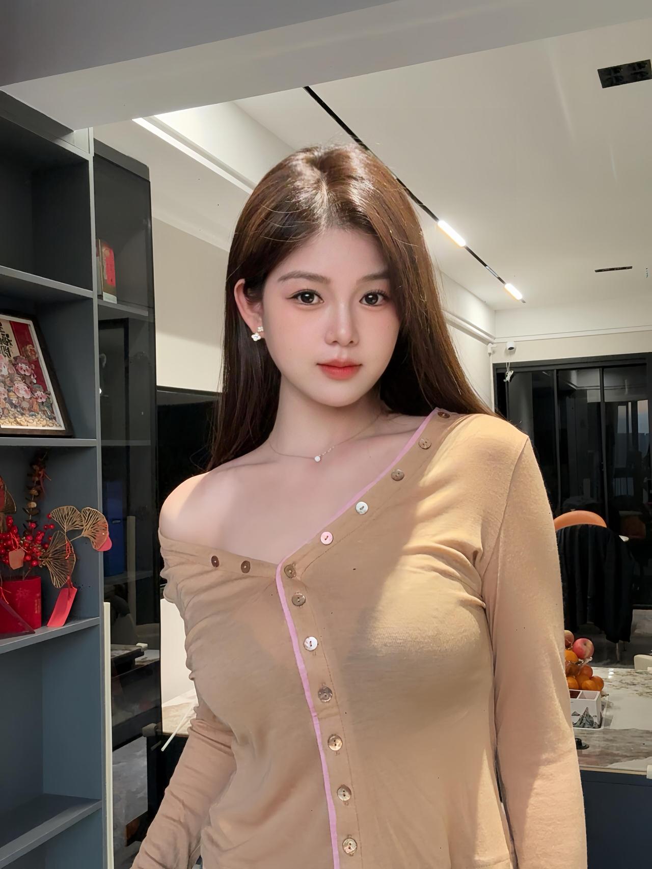 满庭芳·暖室娇容 暖室灯柔,晴光轻洒,一隅景致温融。浅咖裁袖,粉线缀衣容。长发垂肩若瀑,眸光澈、明似星瞳。轻抬手,指尖轻捻,娇态惹春风。 嫣然,微笑意,眉弯藏俏,唇染胭红。看案头红饰,暗衬芳秾。漫理云鬟轻晃,身姿婉、软语还慵。人间味,这般娇好,岁岁伴花浓。原创诗词 穿搭 高清美女