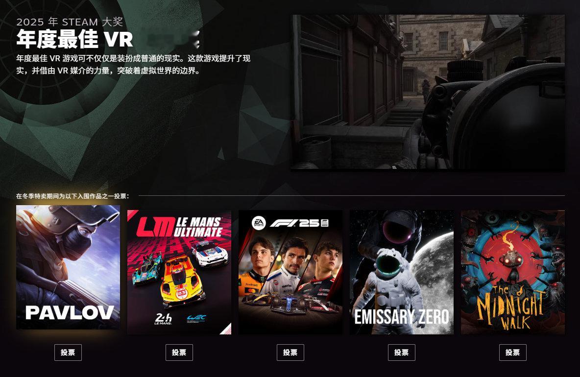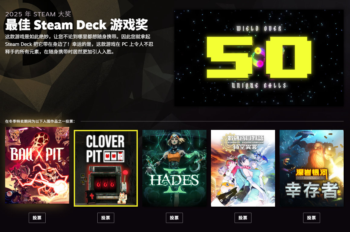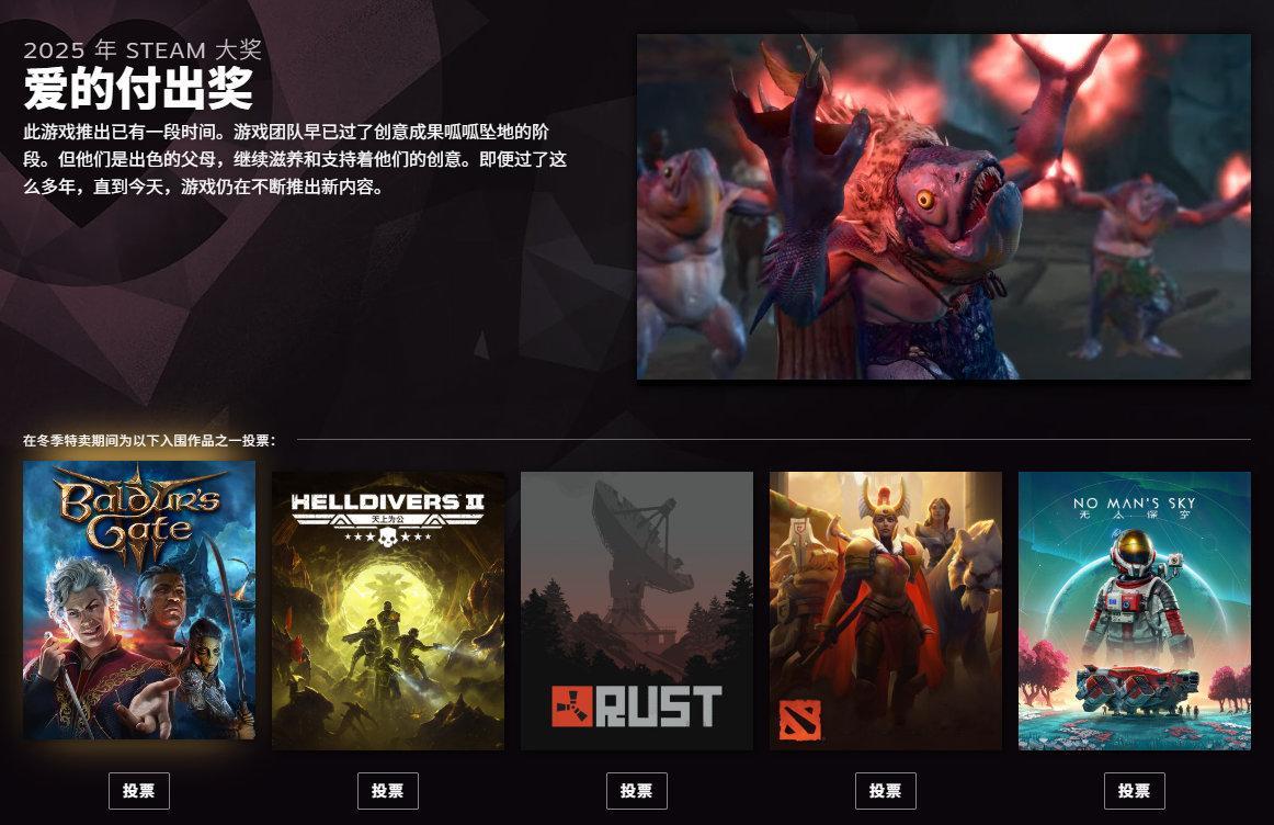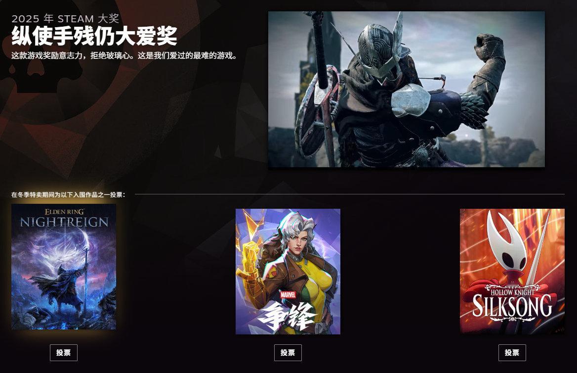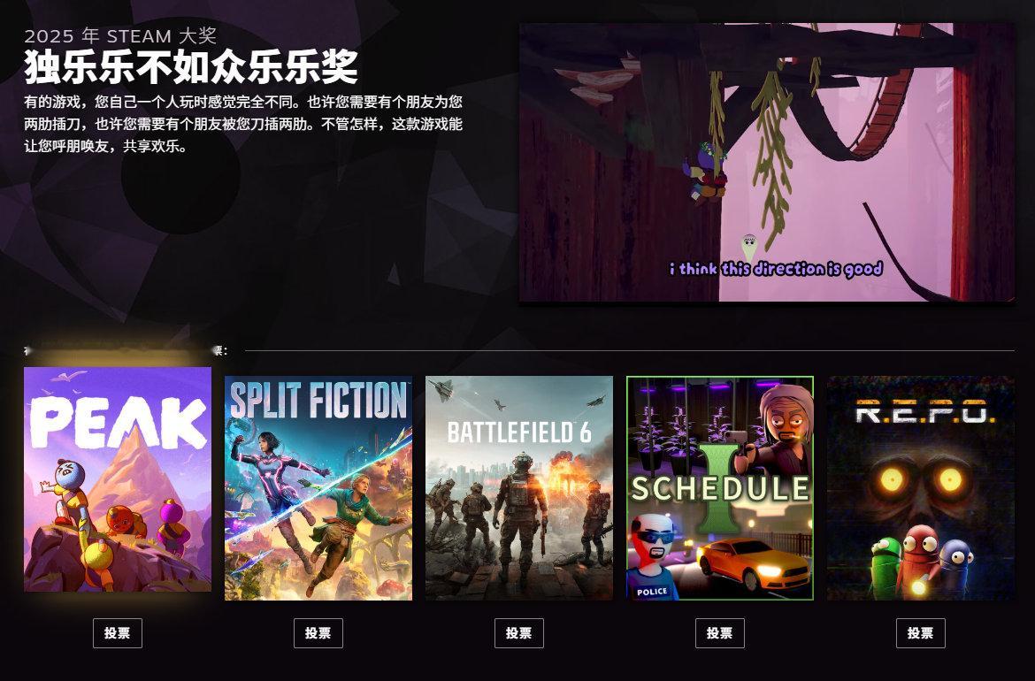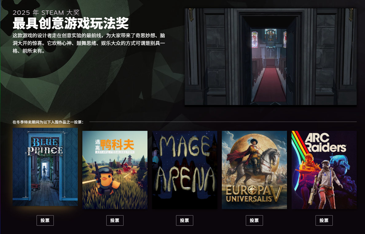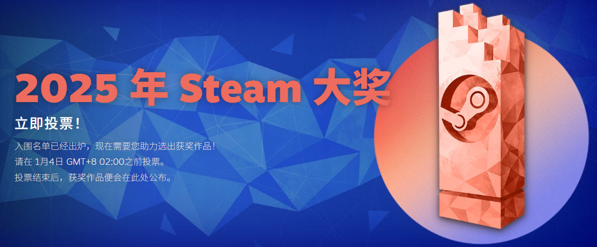 2025年Steam大奖提名公开,投票已开启,北京时间2026年1月4日凌晨两点