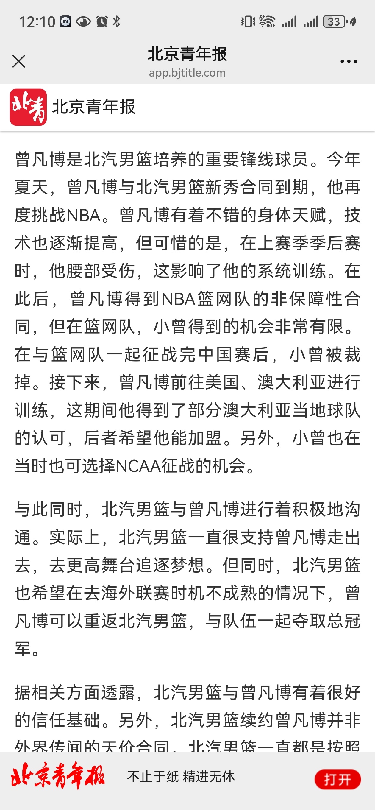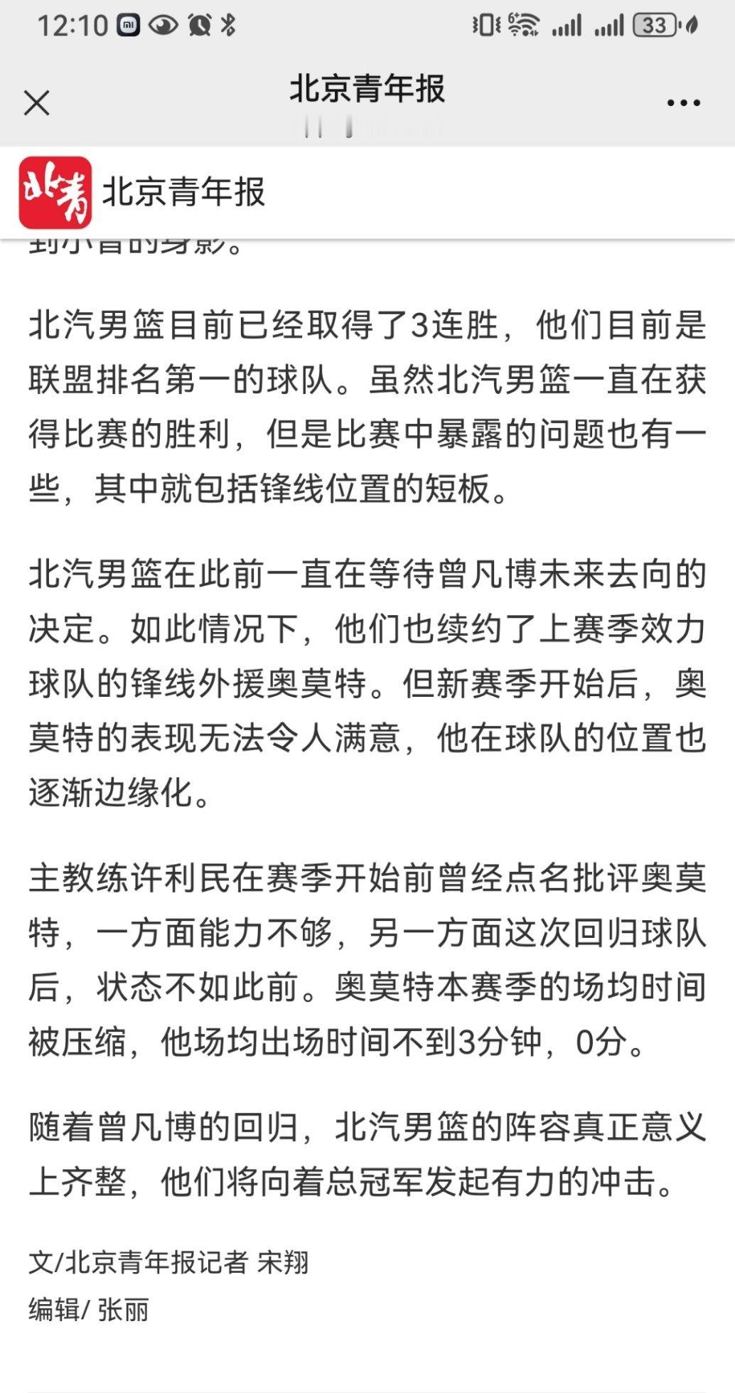 媒体人宋翔报道,曾凡博官宣回归!首钢完全体形态达成!北汽男篮的阵容真正意义上齐整,他们将向着总冠军发起有力的冲击。曾凡博重返北京首钢曾凡博将重返北京首钢男篮