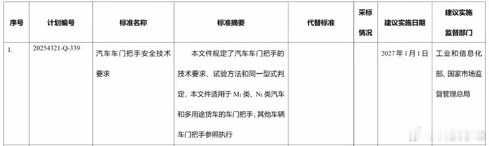 明确禁止全隐藏式门把手《汽车车门把手安全技术要求》分别对车外和车内门把手进行了规范。那能不能给老款车做一个建议性得升级计划呢?本次的细则真的挺好,无论是对司机还是乘坐人都便利和安全了好多。如果你或者家人经历过被隐藏式门把手挤压的情况,一定深有感触!