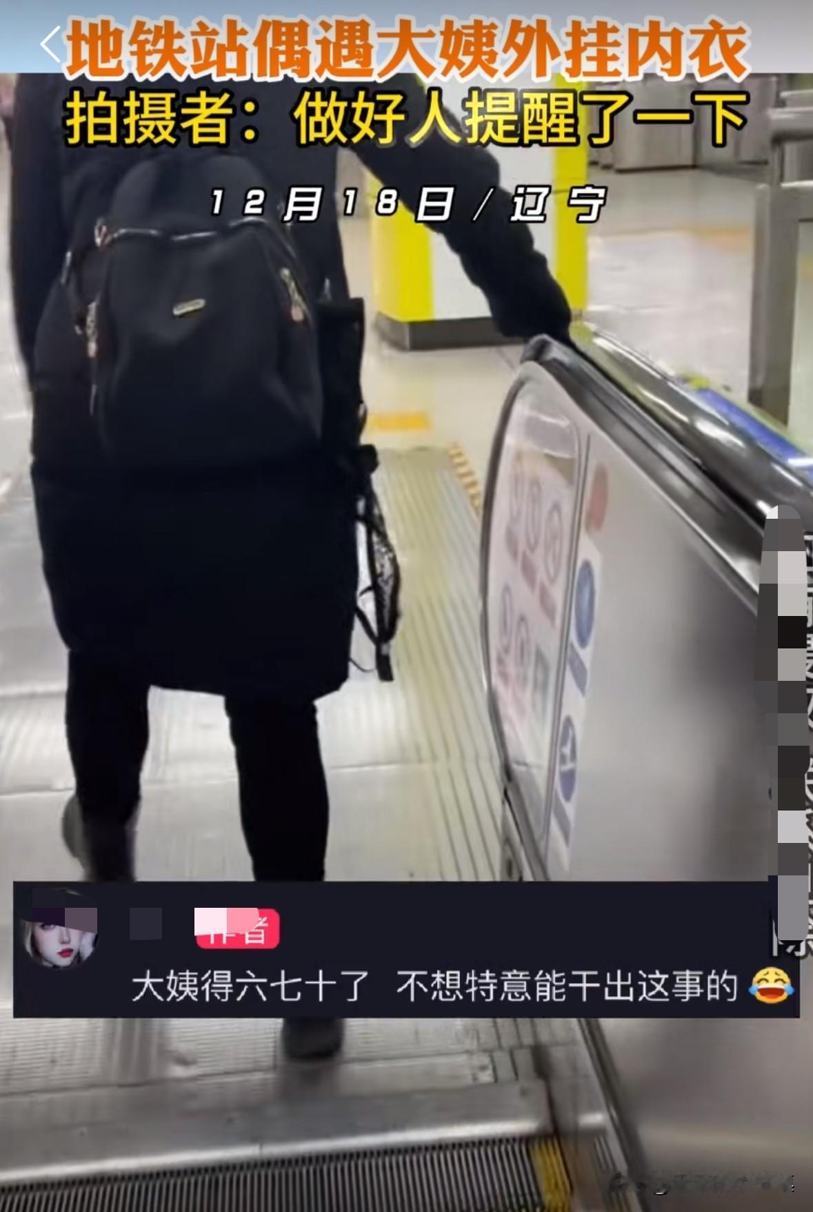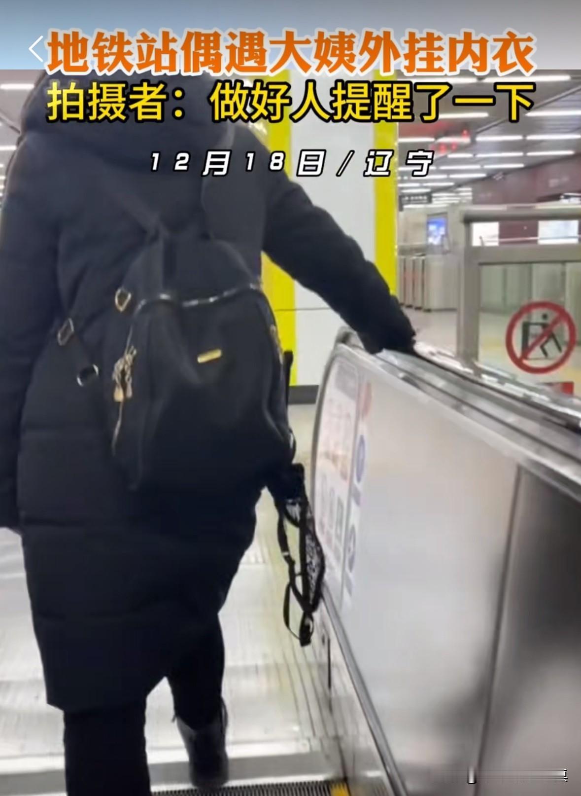 地铁站遇到一位阿姨,包里的蕾丝内衣漏出来了,大姨全然不知! 小伙子提示了一下,大姨慌忙把内衣放进了包里。 没有笑话大姨的意思,我反而觉得大姨应该是个很懂生活的人。 还有提示人家,小声说一下就行了,没必要拍个视频到处宣扬吧!蕾丝胸罩